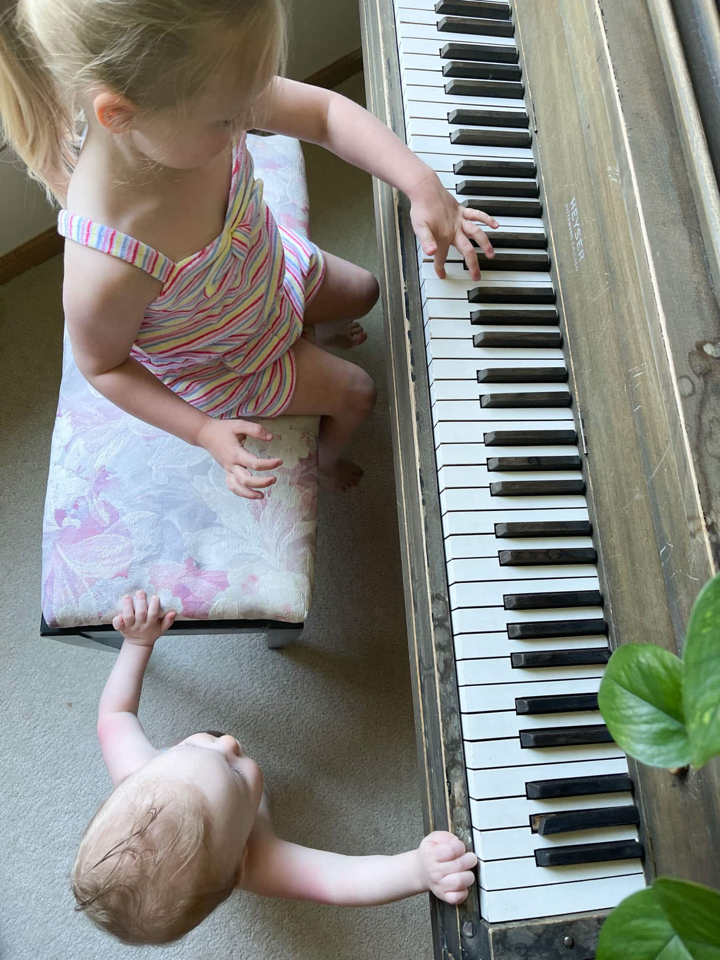 Playing grandma’s piano.
