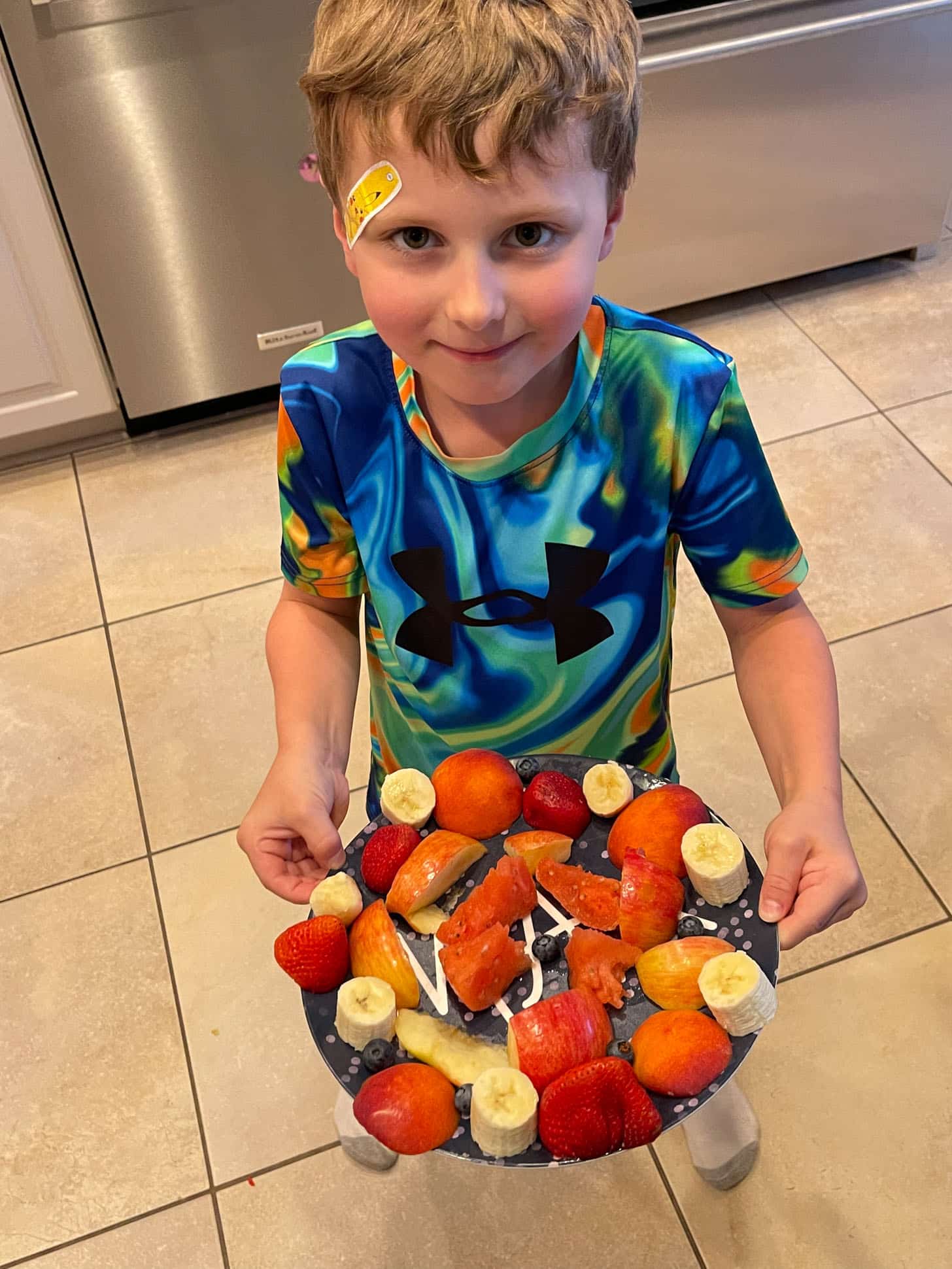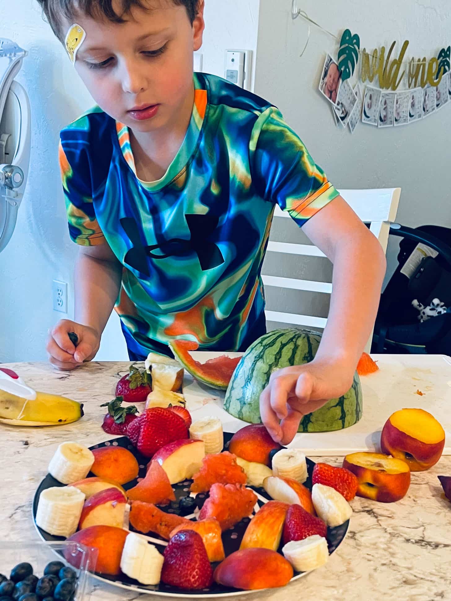 He insisted on making a “fancy” fruit plate to go with our dinner. So cute.