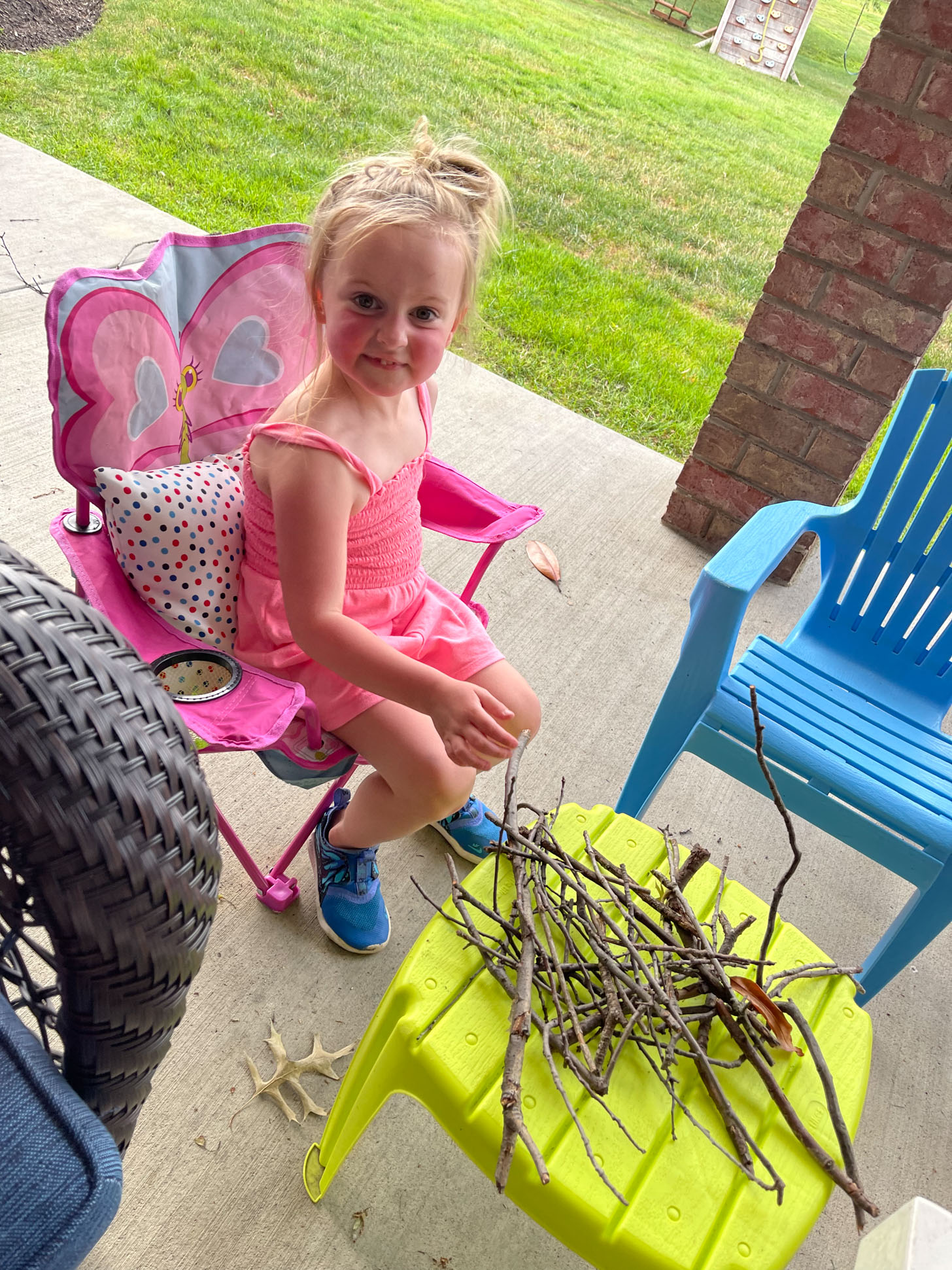 Emilia built us a campfire while we were reading on the patio.