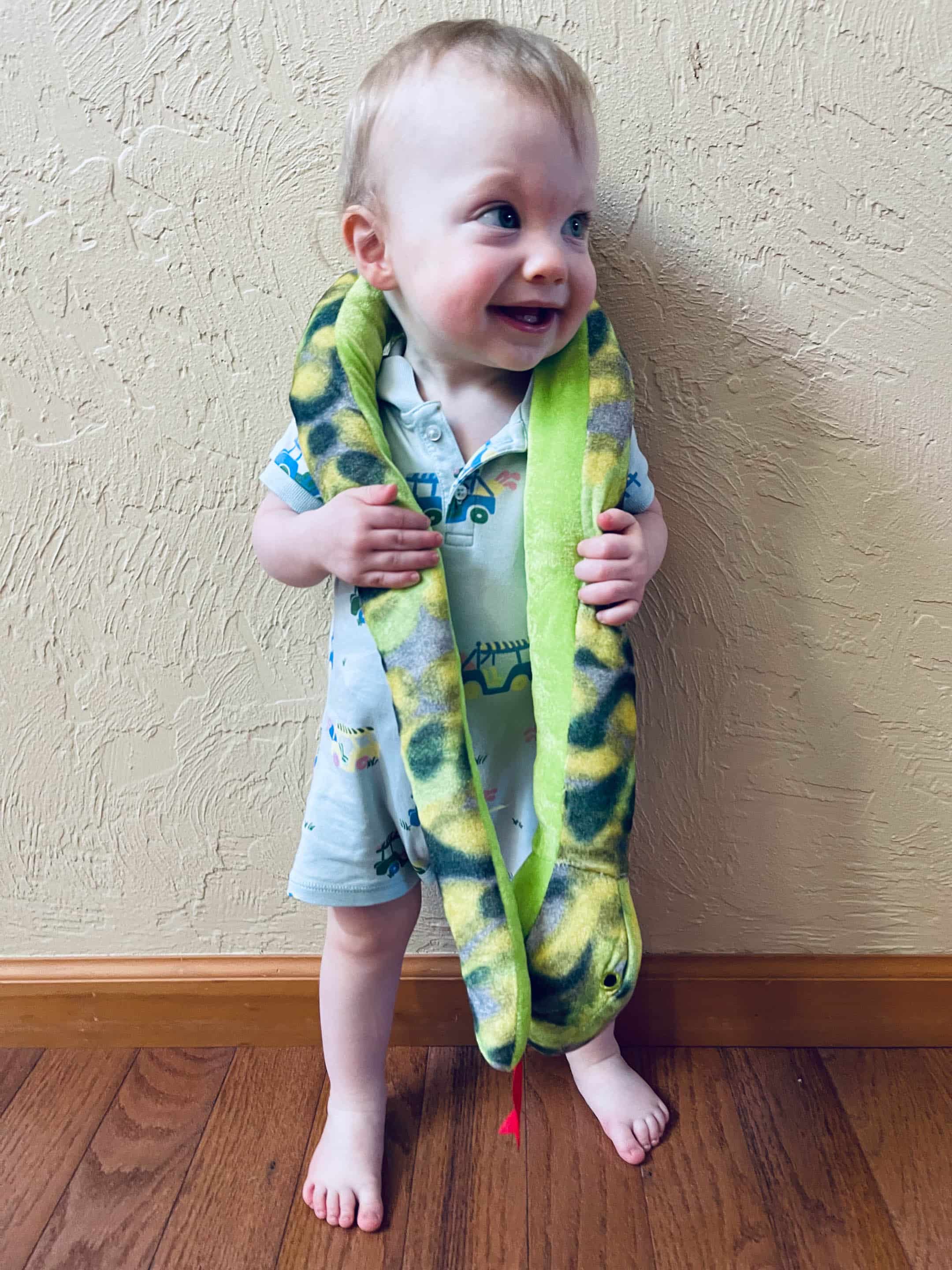 Britney vibes? All weekend he has been taking this stuffed snack and wrapping it around his shoulders. It’s hilarious.