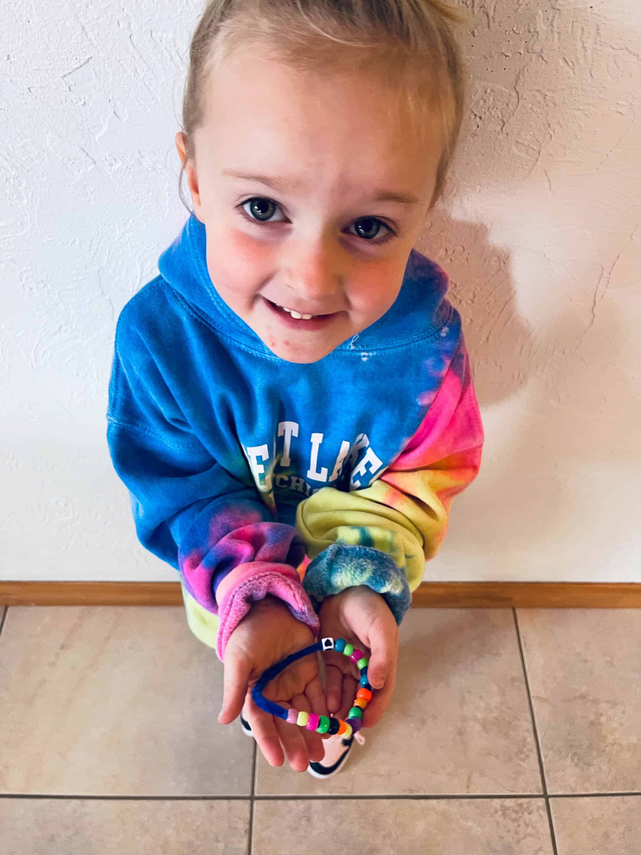 Super proud of this friendship bracelet she made in school.