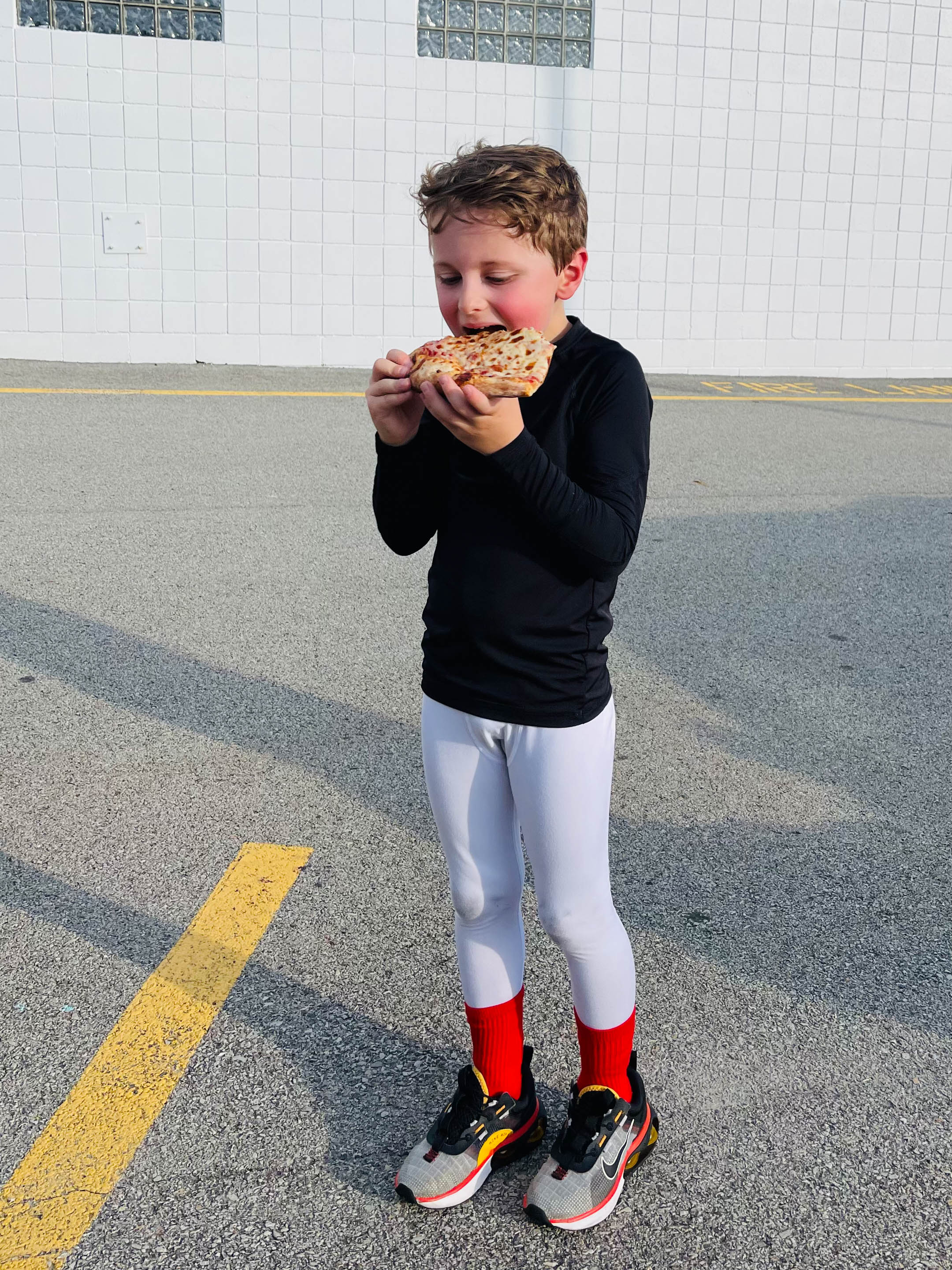 Max was so hungry after hockey though that he scarfed pizza in the parking lot.