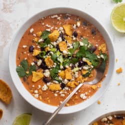 Yes, just black beans in our tortilla soup and I can’t even explain how wonderful and satisfying this is. It’s perfect for taco night or a great soup to make for work lunches.