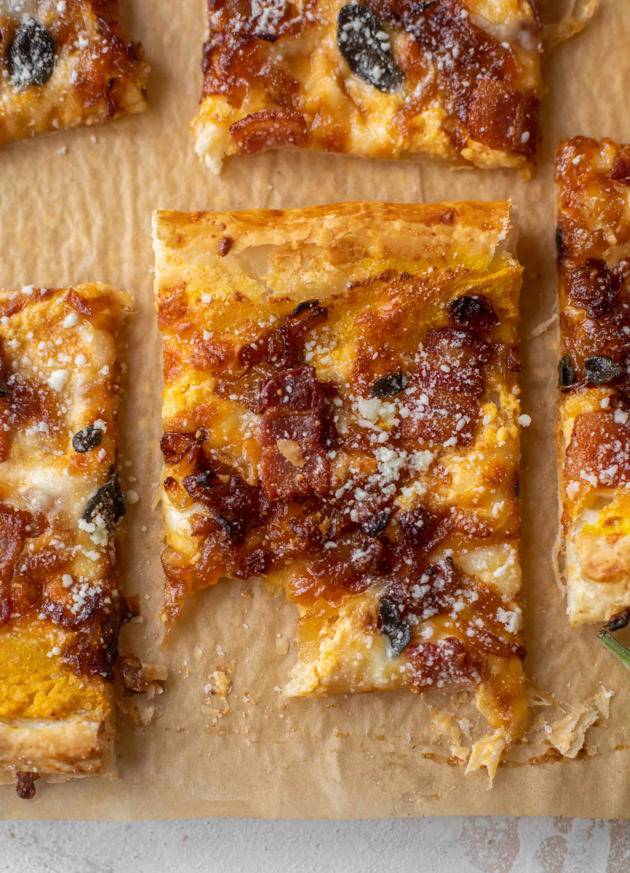Savory Bacon, Sage & Pumpkin Puff Pastry Pizza.
