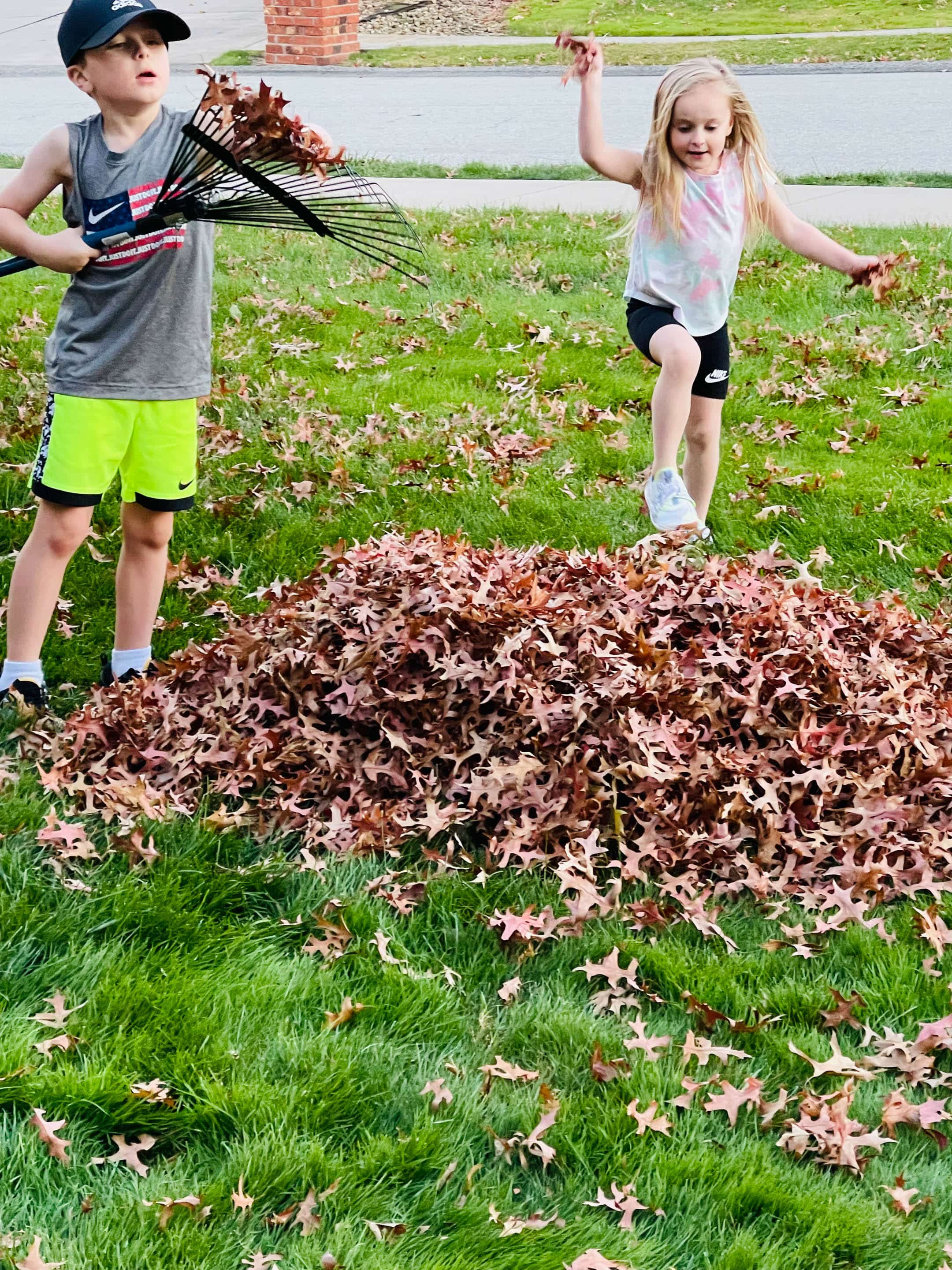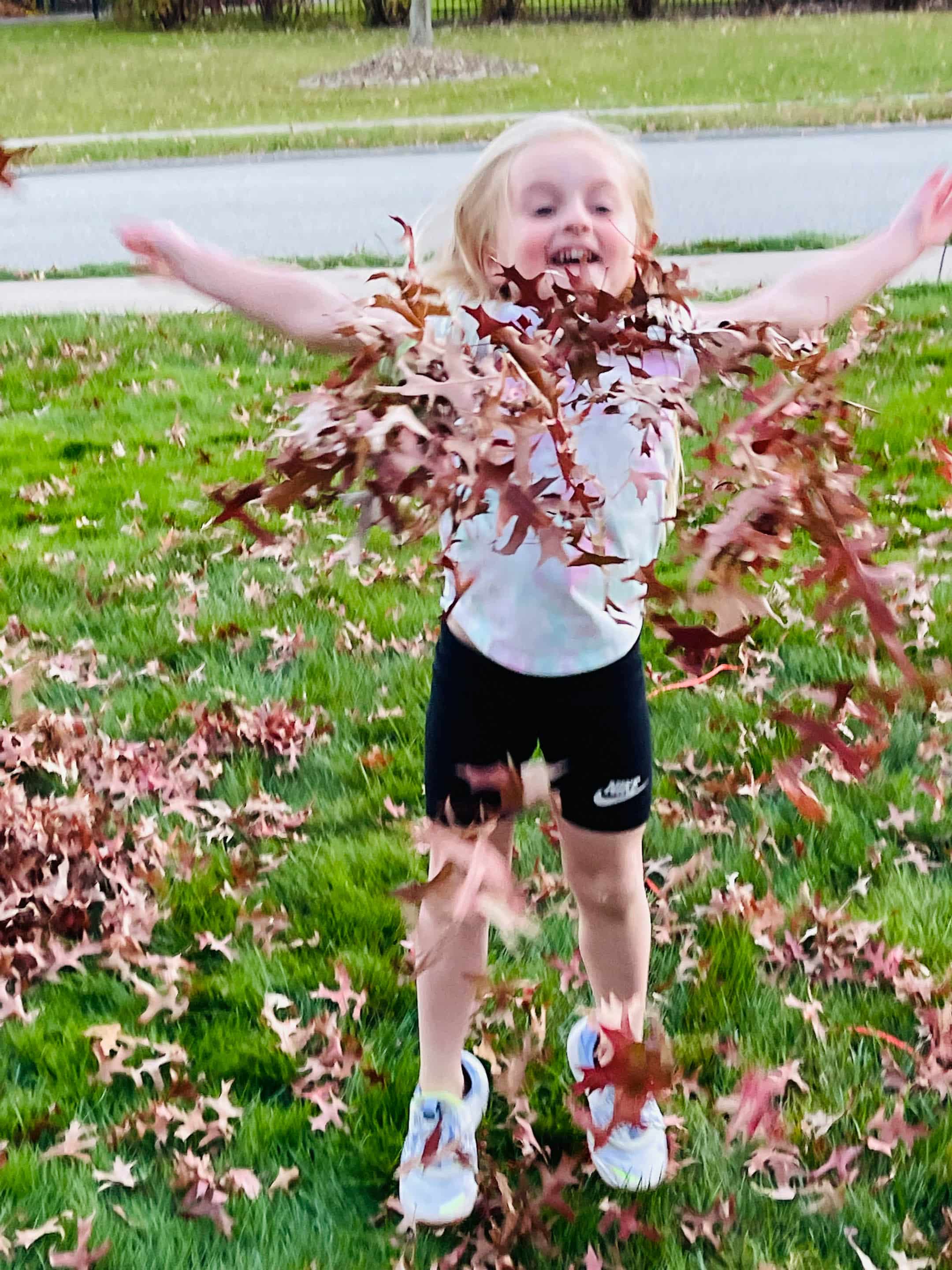 “Helping” with the thousands of leaves!