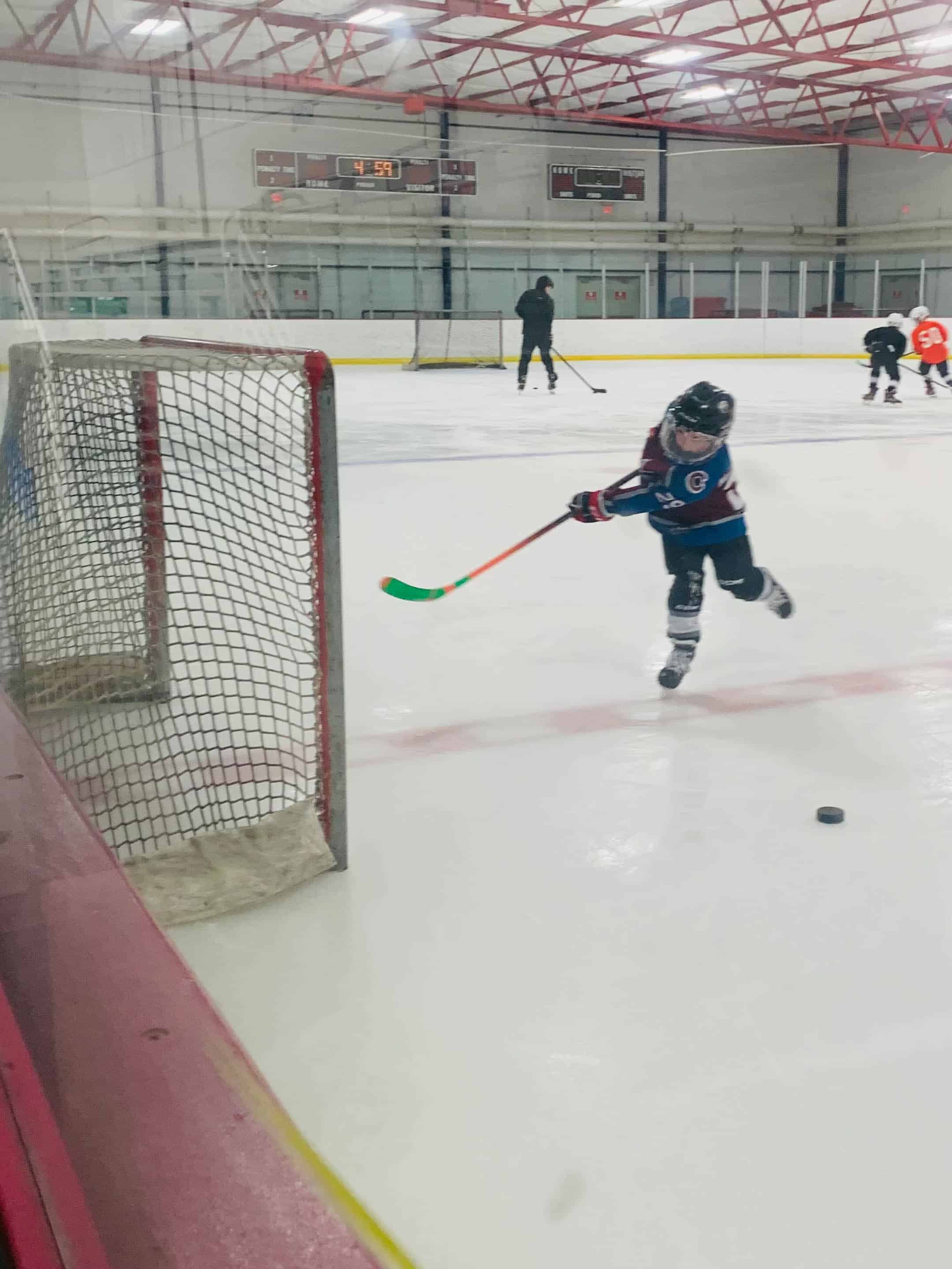 Sweetest sister cheering for Max at his hockey early this morning! She got this headband for her birthday and loves it.