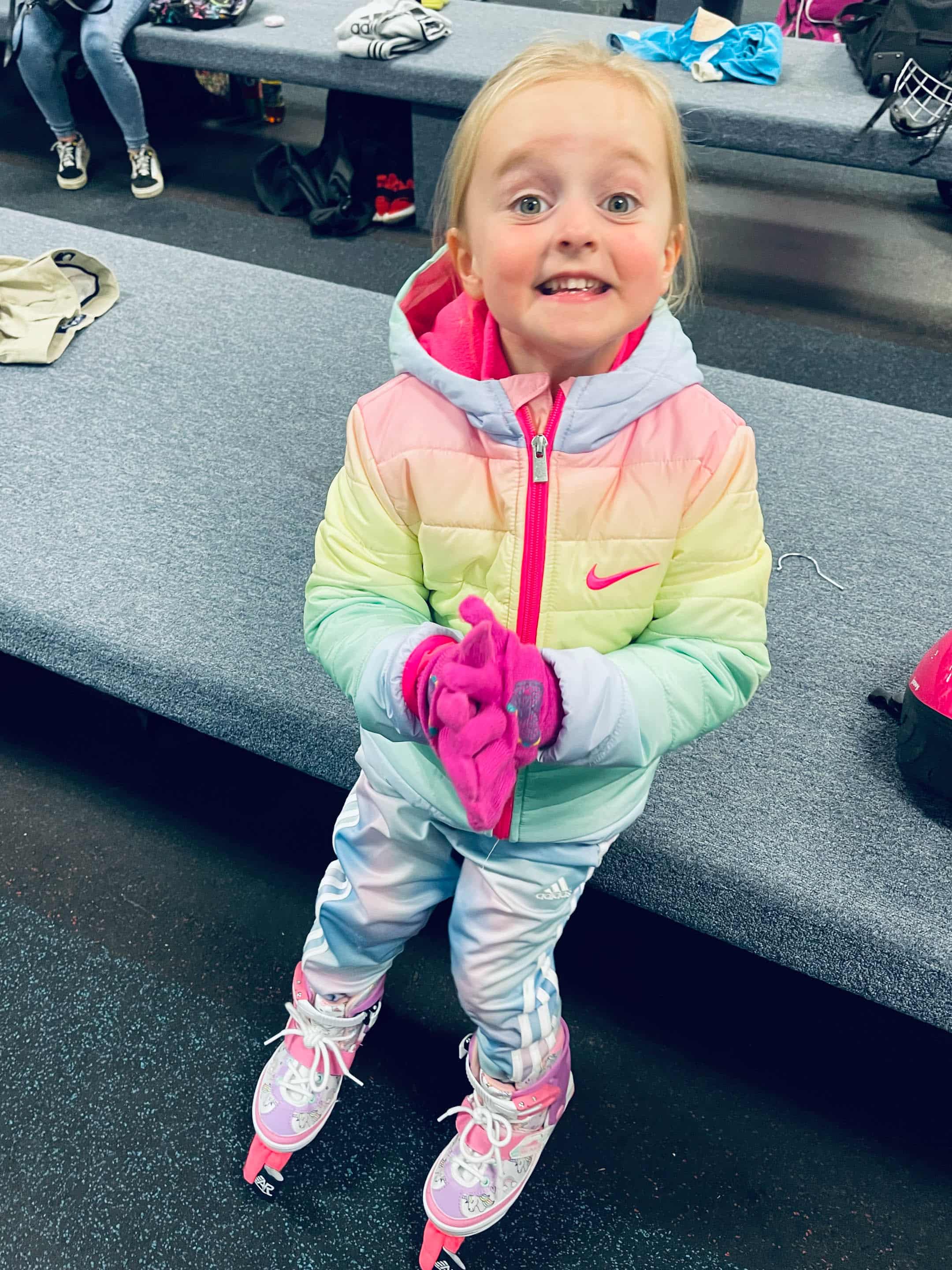And my rainbow girl ready for skating lessons.