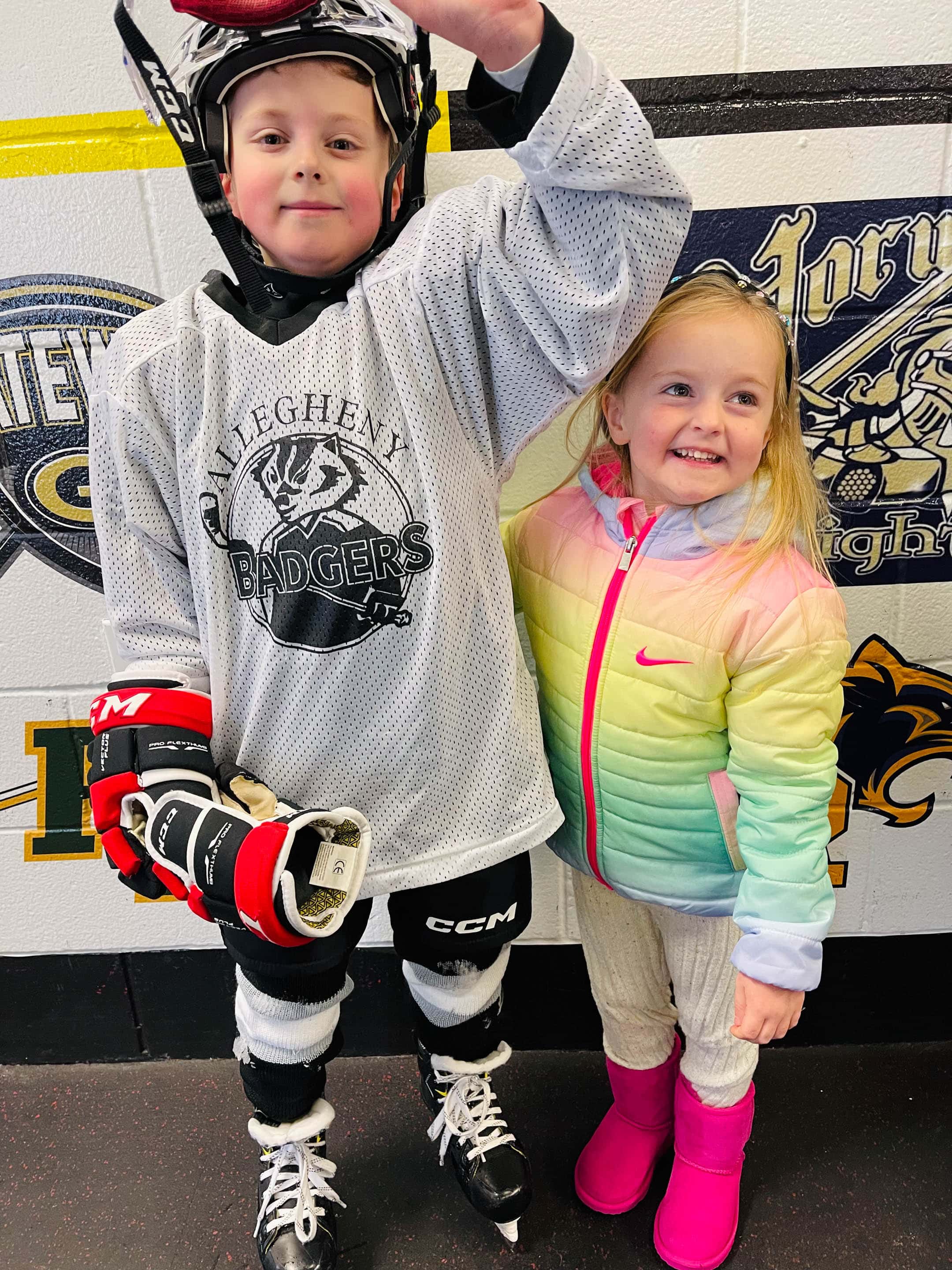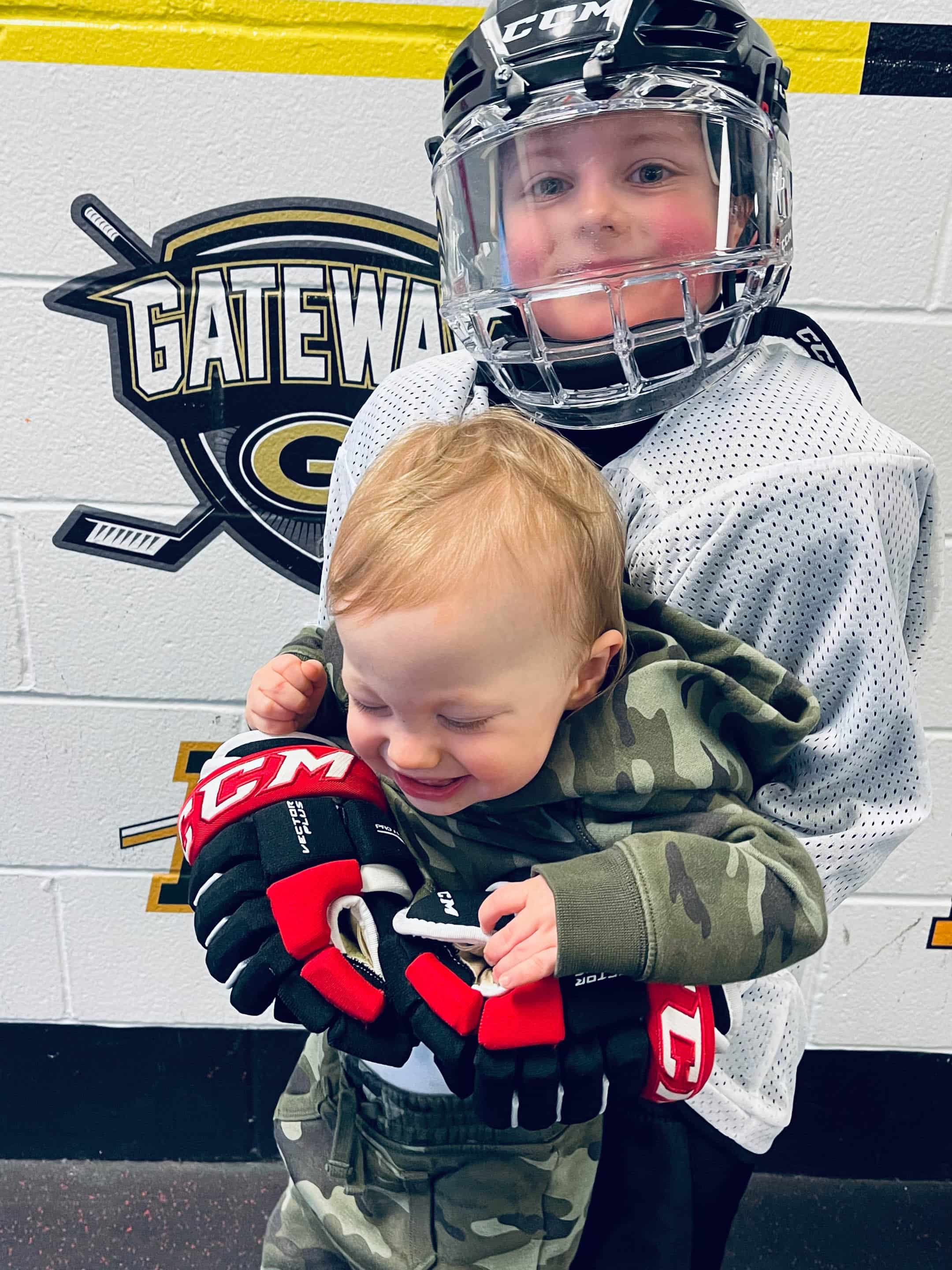 A happy hockey play with his baby bro who just wants to RUN!