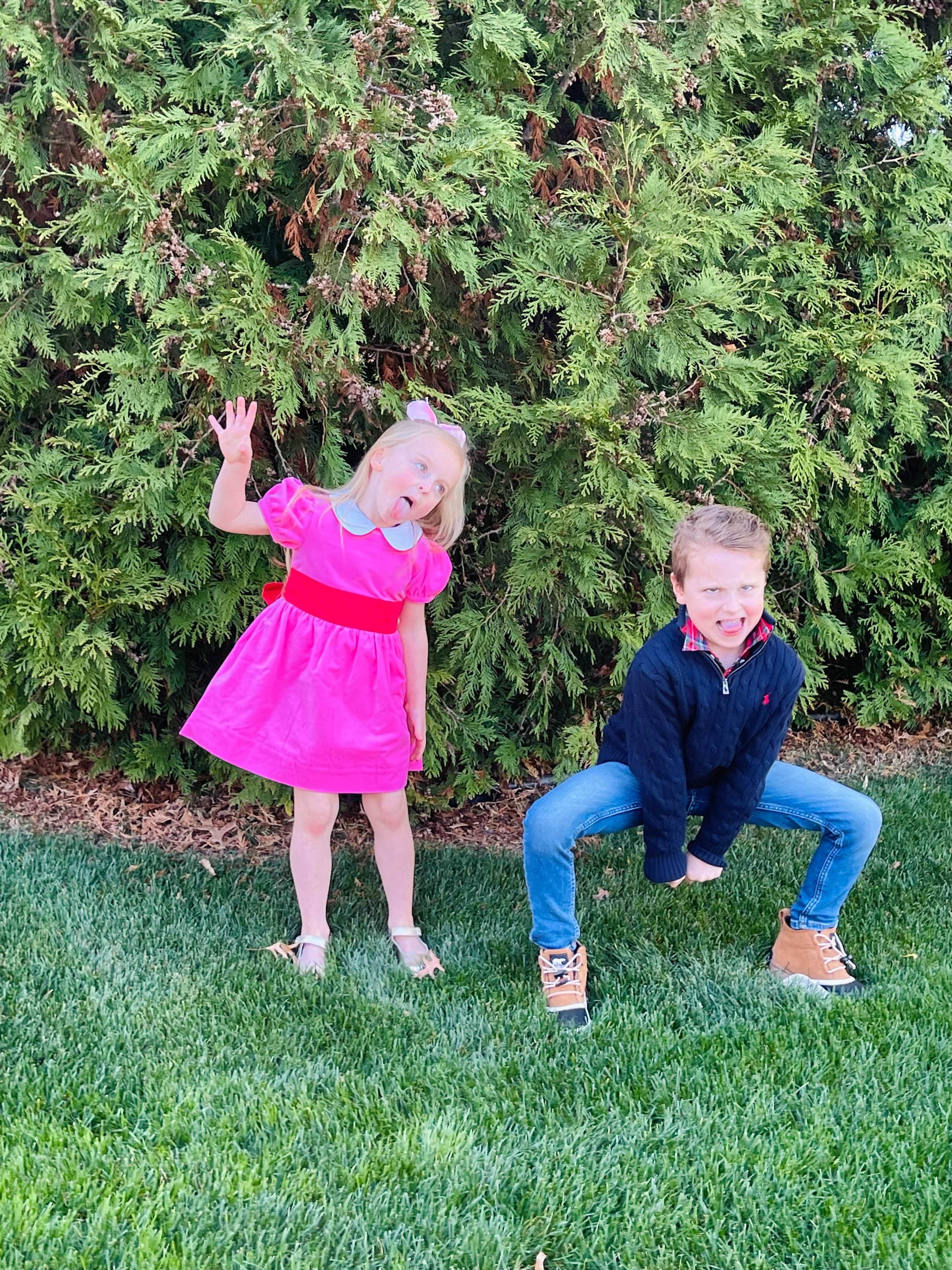 I was taking their holiday photos and trying to find a good spot. Funny faces to find the spot!
