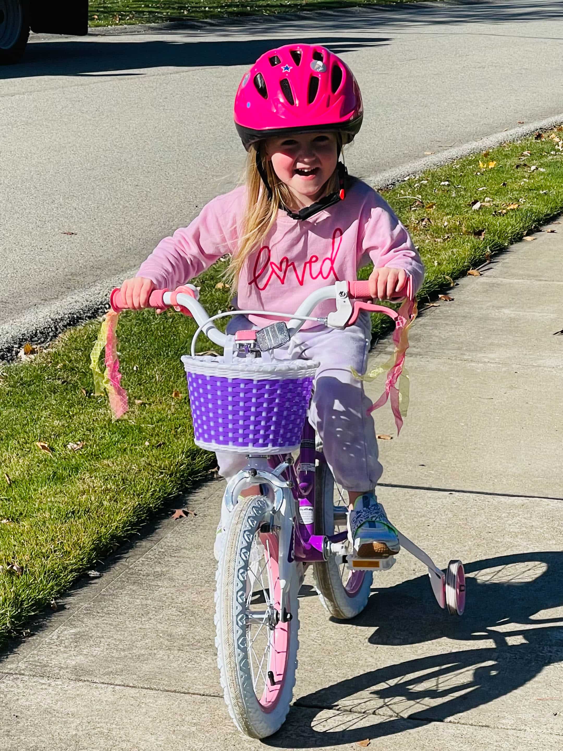 And biking in her neon colors.