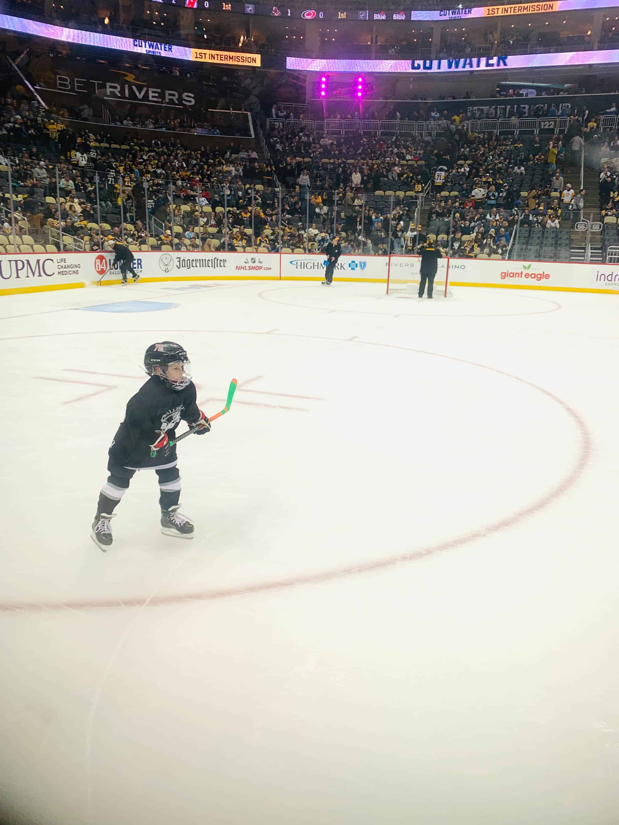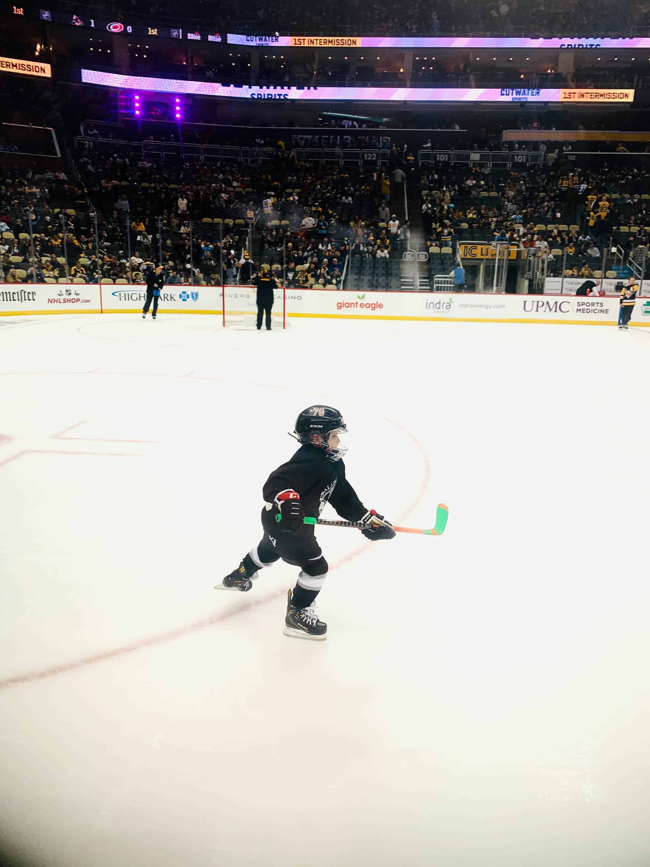 Wednesday night we had so much fun: Max got to play during the Pens game intermission!