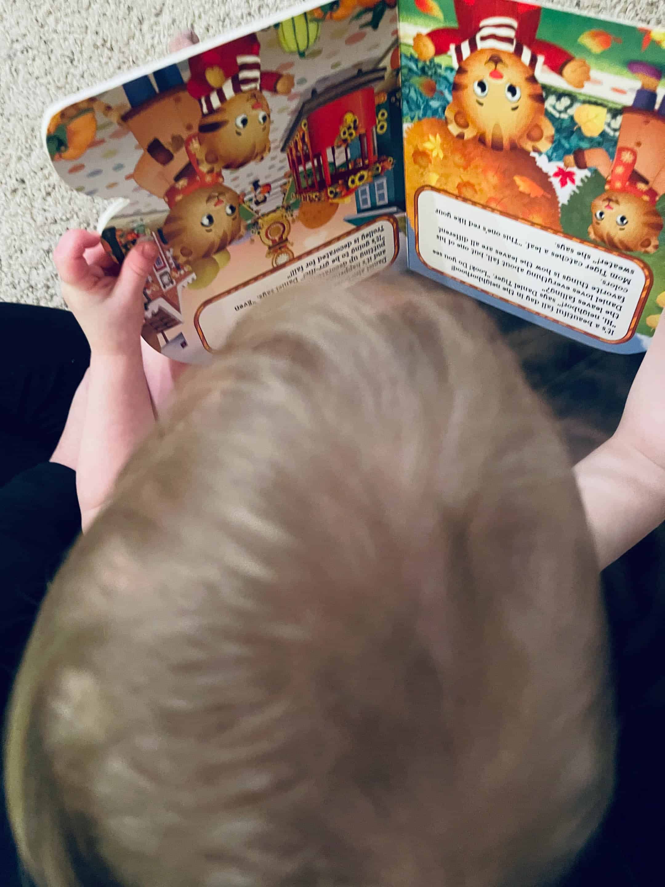 But will plop down in anyone’s lap to read all the books, even upside down.