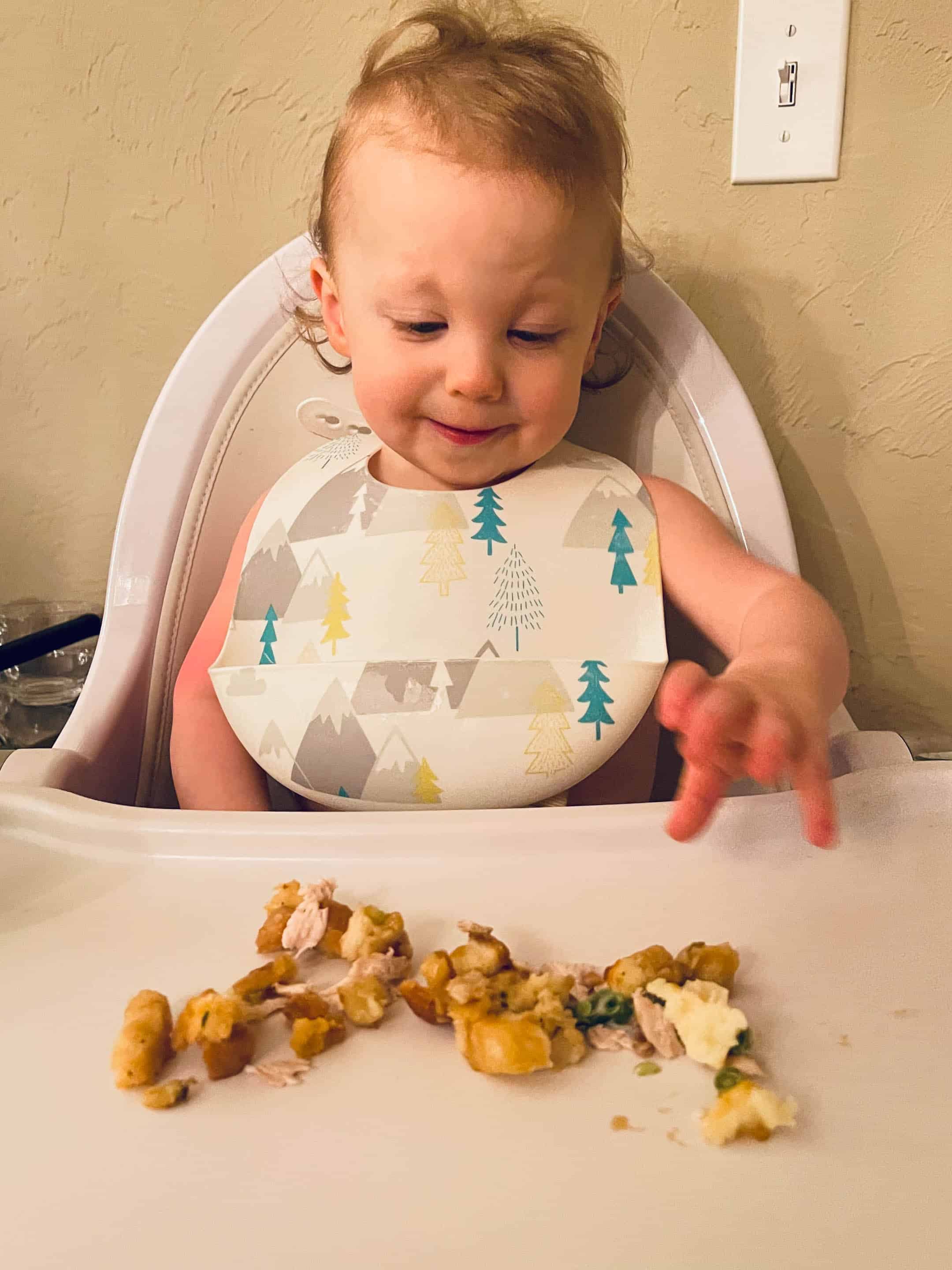 Jordan’s first Thanksgiving meal! He wasn’t eating solids yet last year. His fave? The green bean casserole!