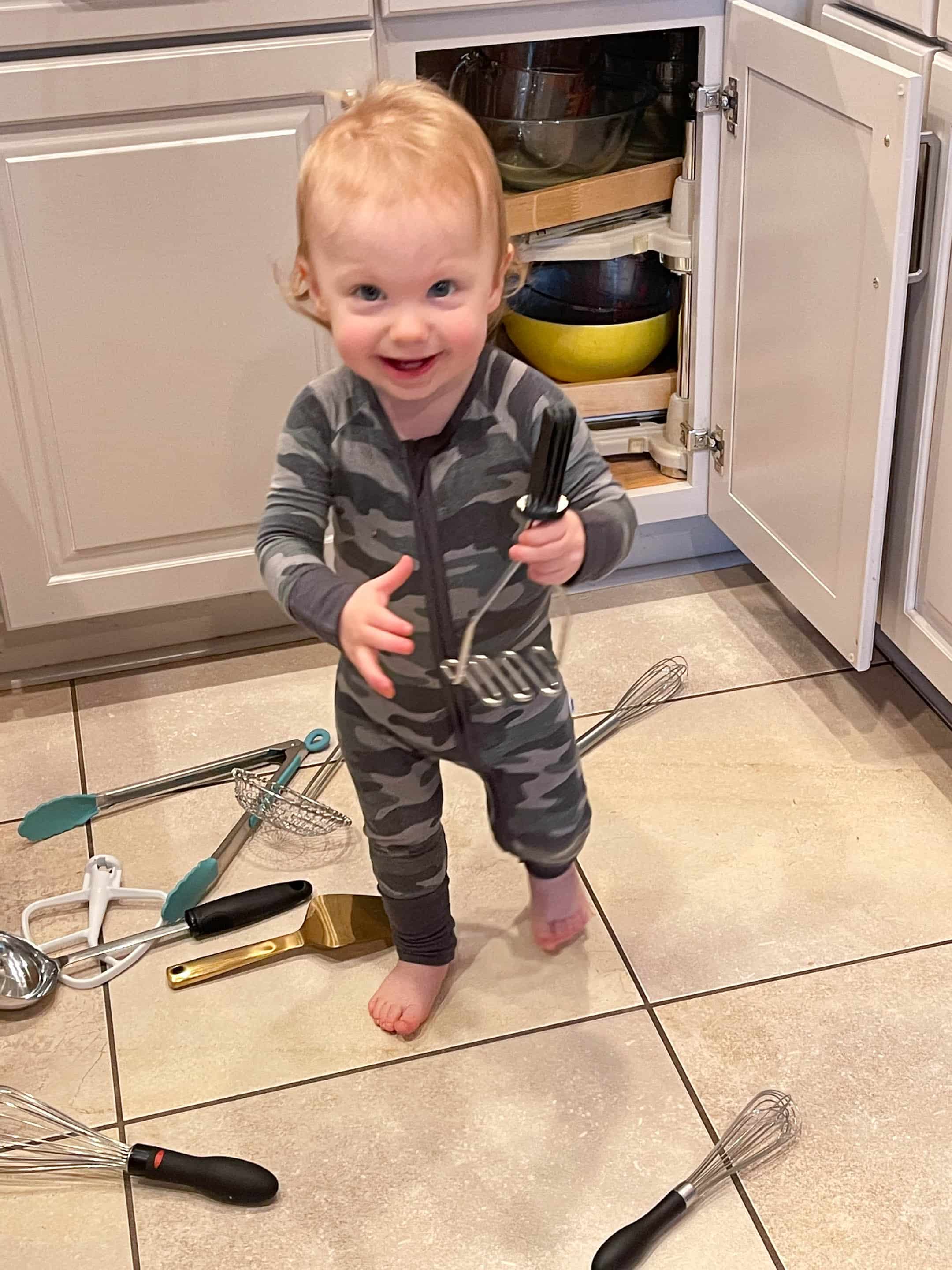 How to prep Thanksgiving with a little babe!! Give them all the kitchen utensils.