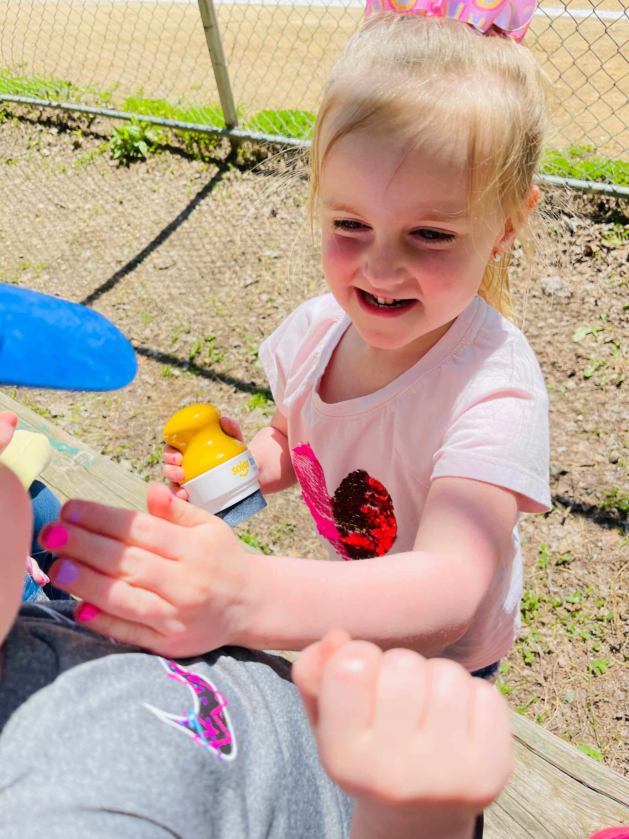 Emilia is the best. Reapplying Jordan’s sunscreen like the best helper she is.