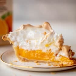 [This orange meringue pie is sponsored by Florida’s Natural! We adore this recipe! A classic, buttery pie crust that is flakey and light, filled with a rich and tangy orange curd. Top with lots of whipped meringue clouds that taste like roasted marshmallow after baking. Delish!]