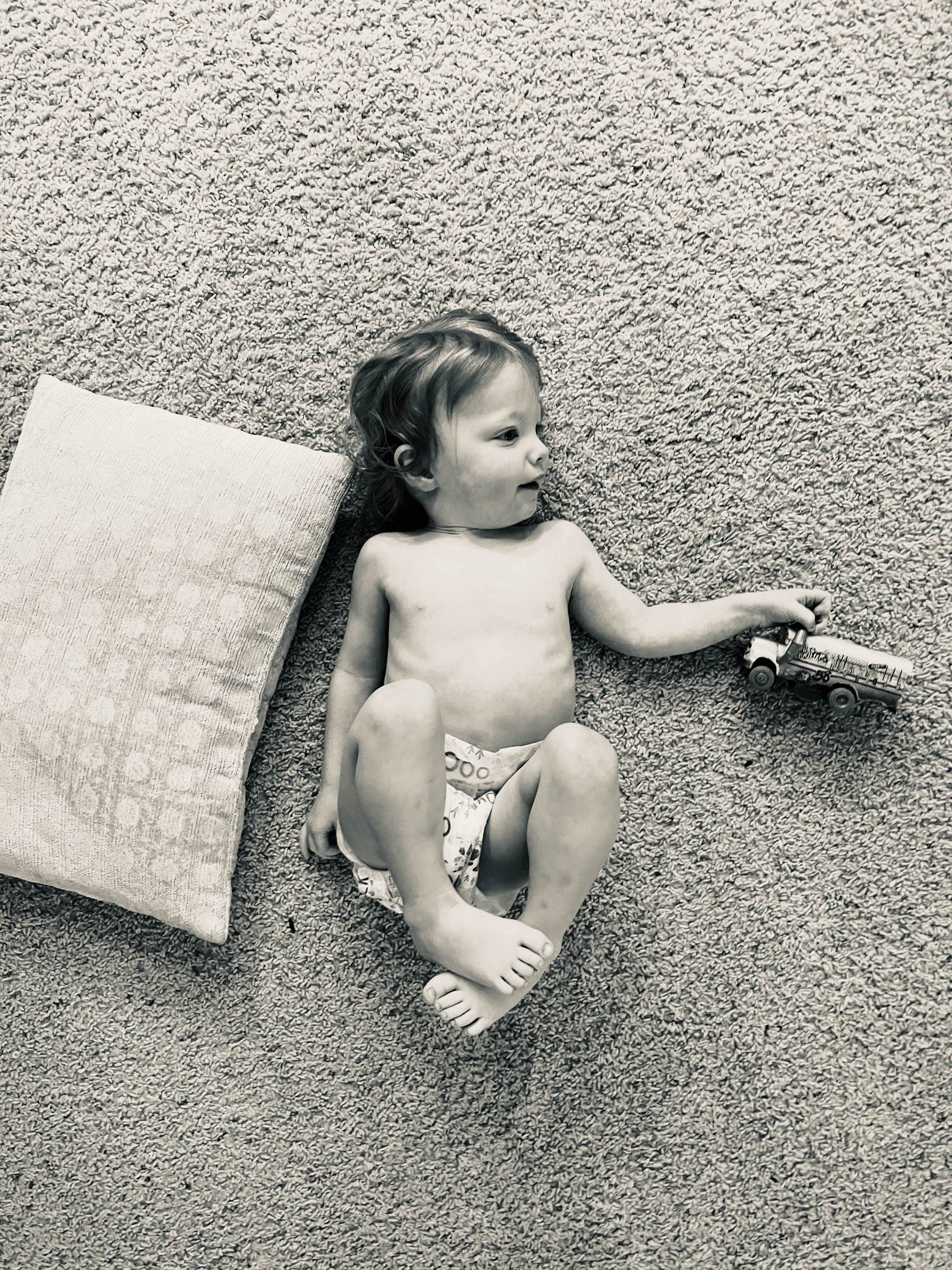 Jordan was just laying on the floor like this watching Cars 3. He runs around all day saying “Miss Fritttttter.”