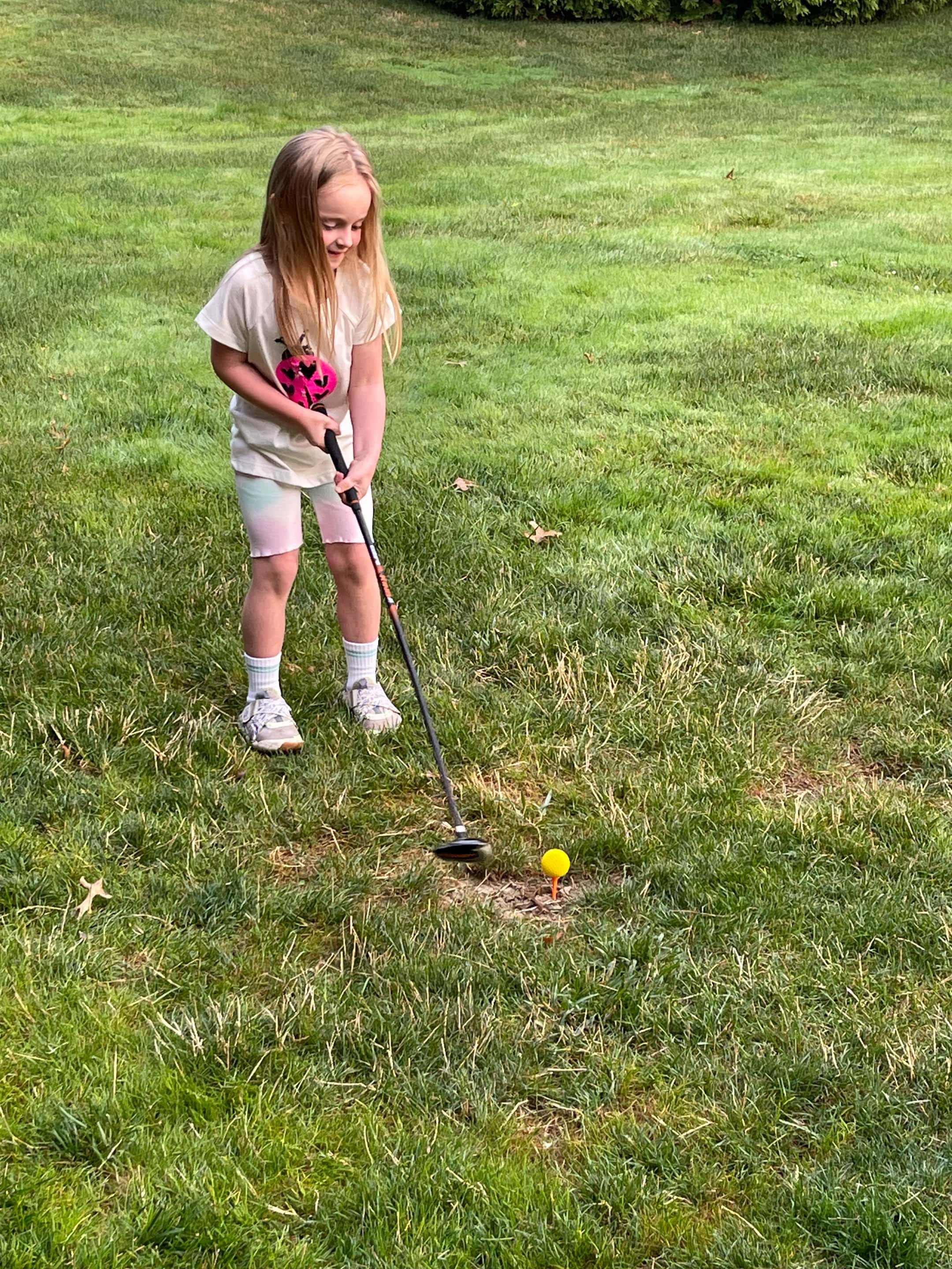 The kids are obsessed with golf right now. Max and Emilia have spent hours everyday hitting golf balls.