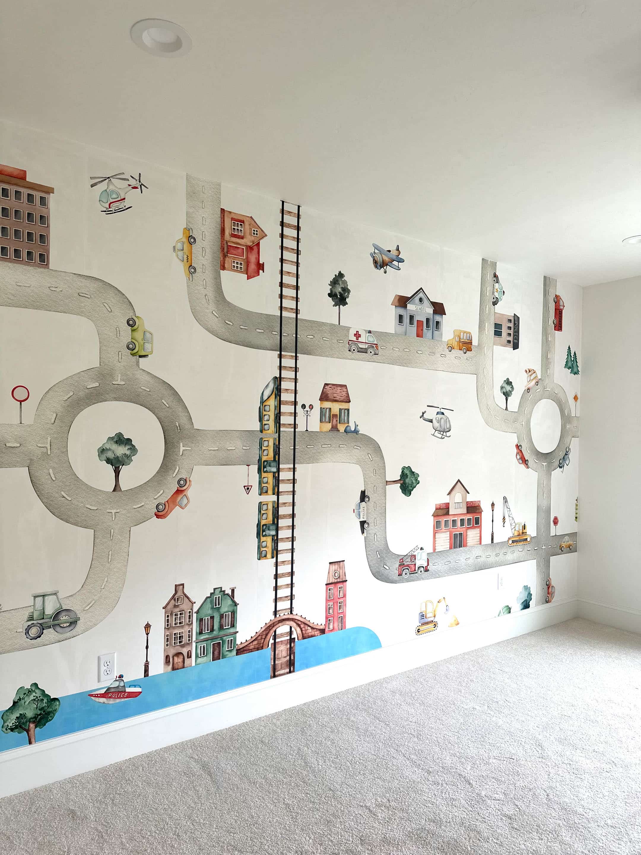 And here’s a peek at the kids’ rooms before they are set up! Max’s love of geography…