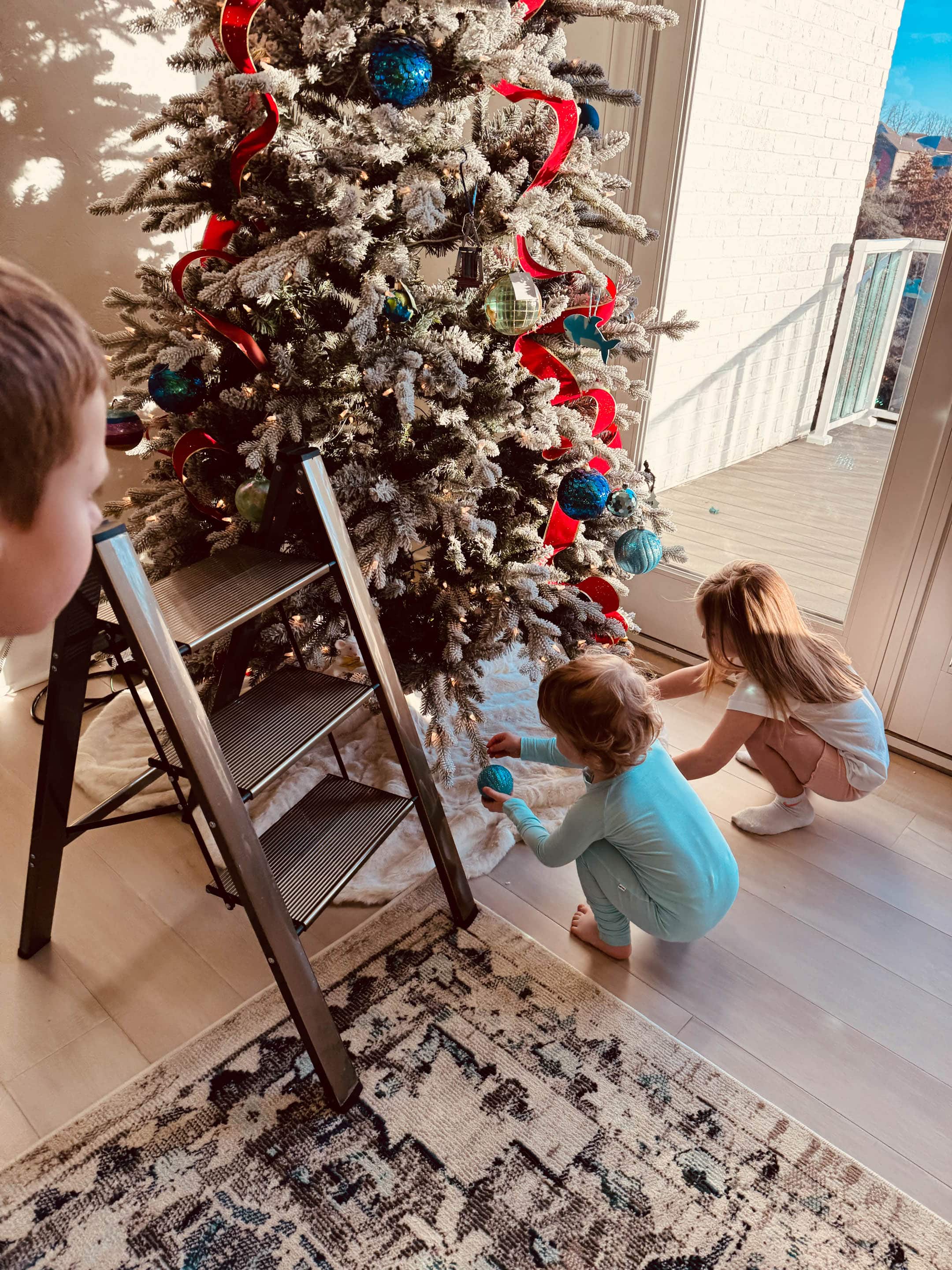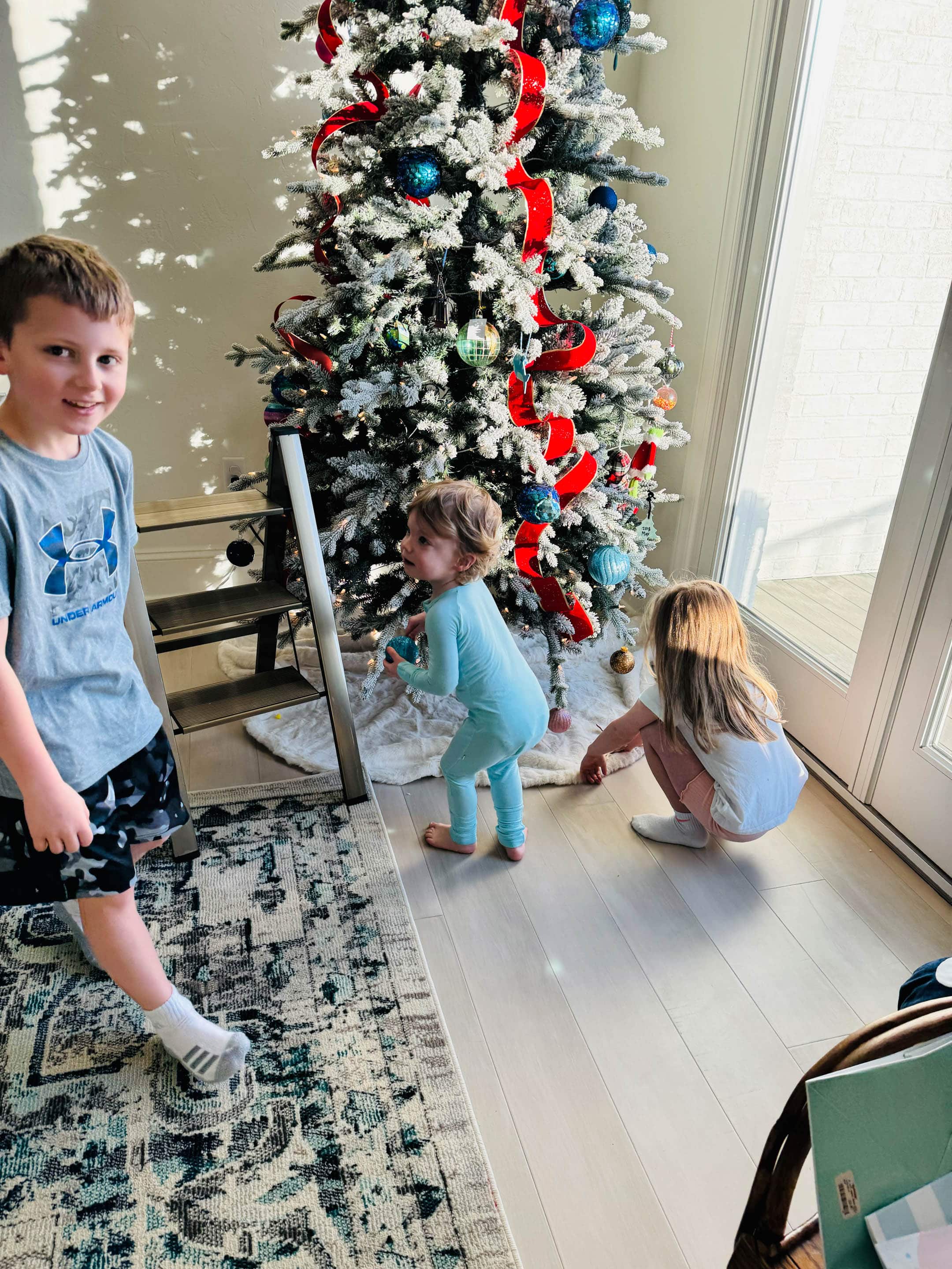 We also put up our regular living room tree. I don’t love this tree in this space in our new house. But since we just moved in, I haven’t wanted to buy anything until we’ve lived in the space. We didn’t get any new furniture and I didn’t buy anything new for Christmas. I’m making lots of notes on what to change and get for next year as the weeks go on.