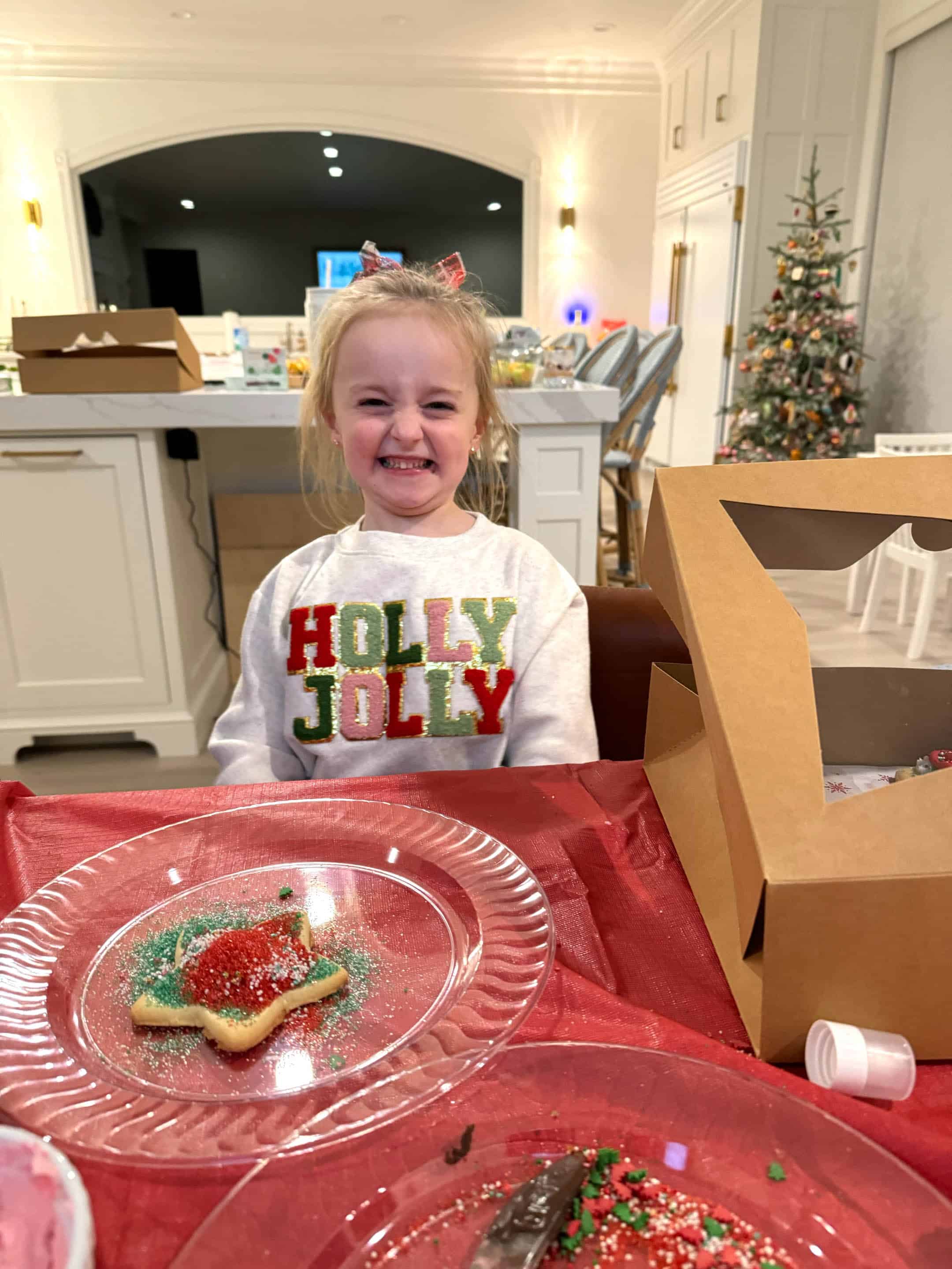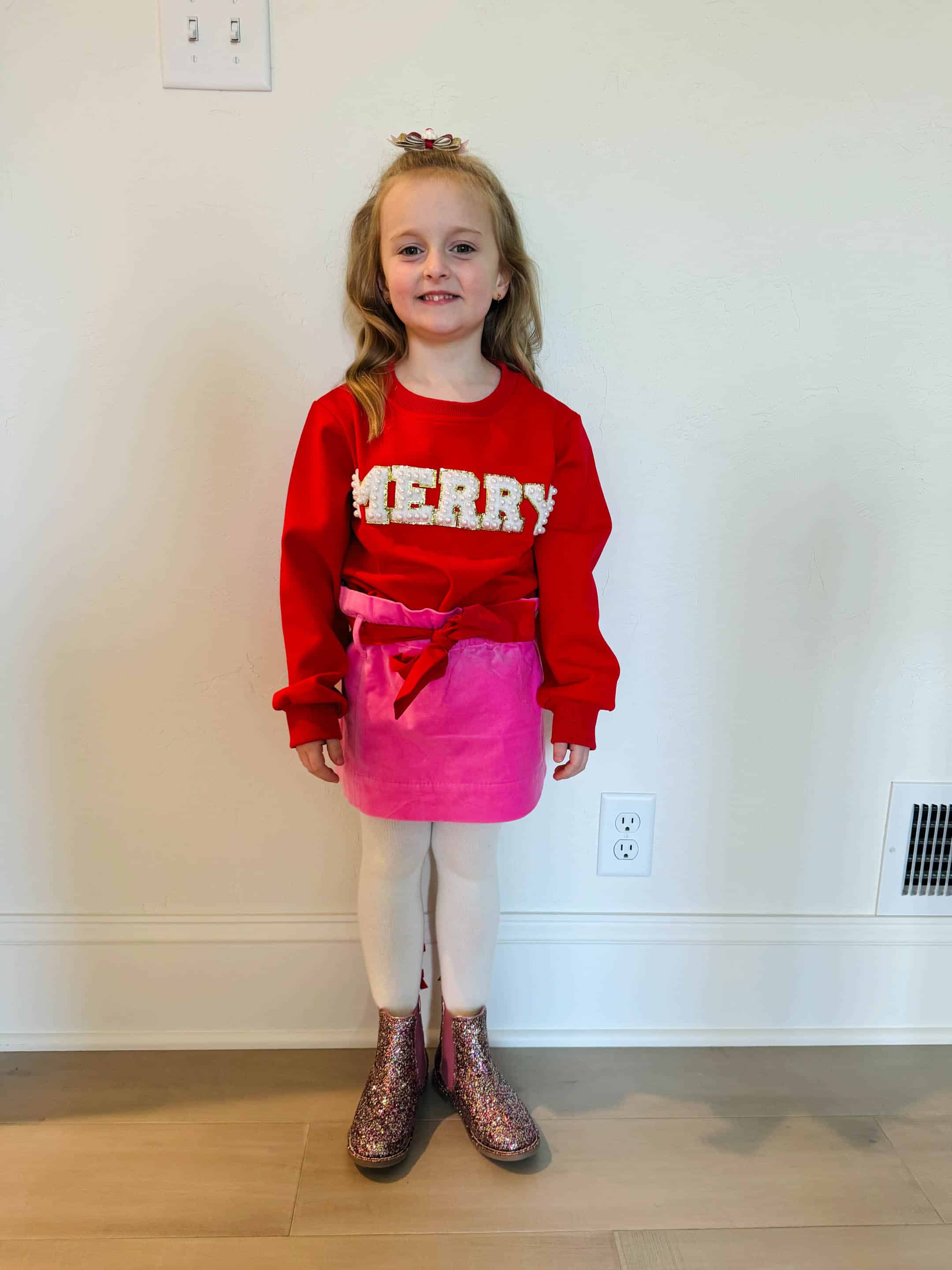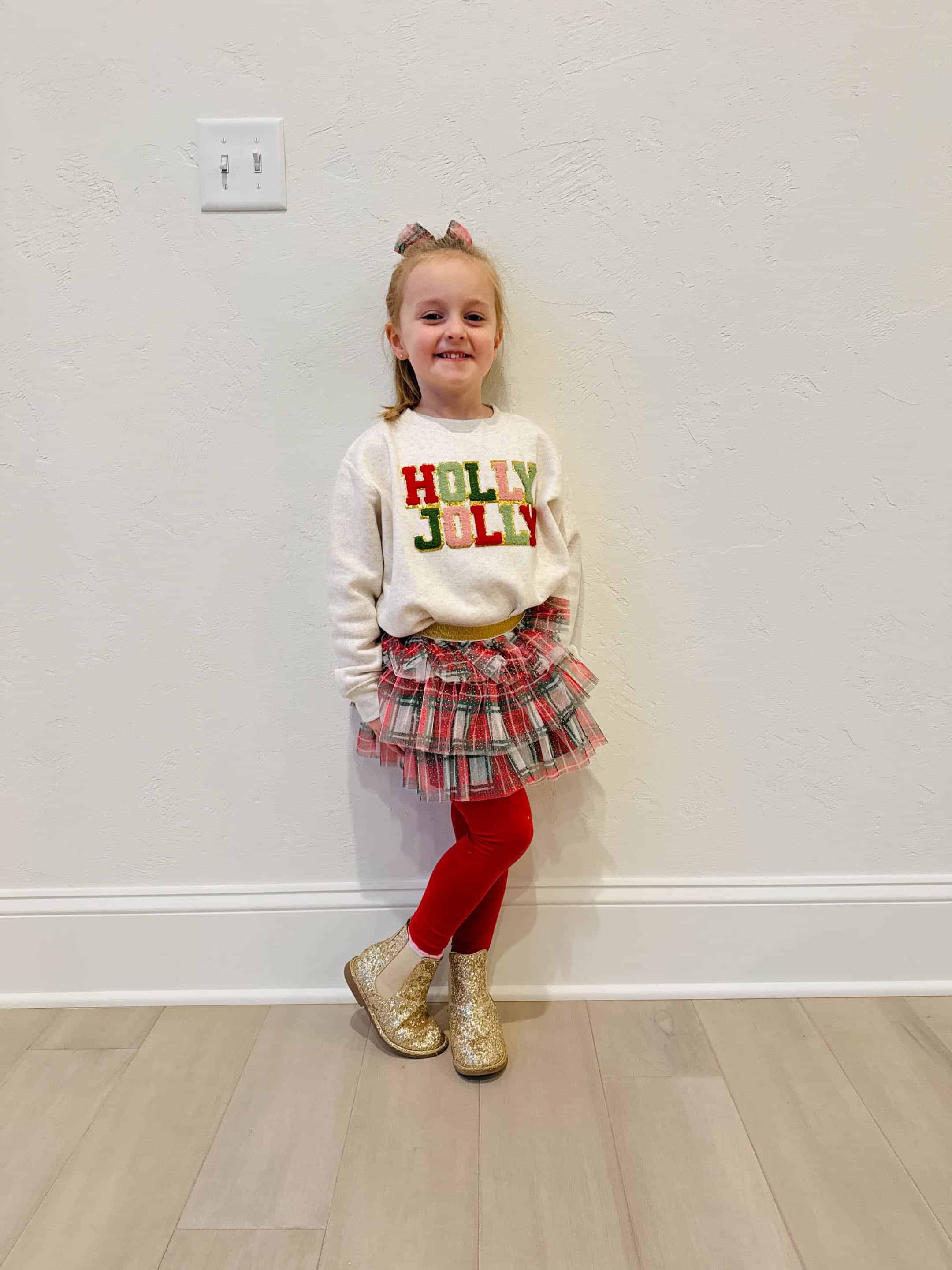 She is the cutest! And her outfits, omg! She is so stylish!! You do a great job putting together the cutest outfits! Where is her Holly Jolly sweatshirt from?