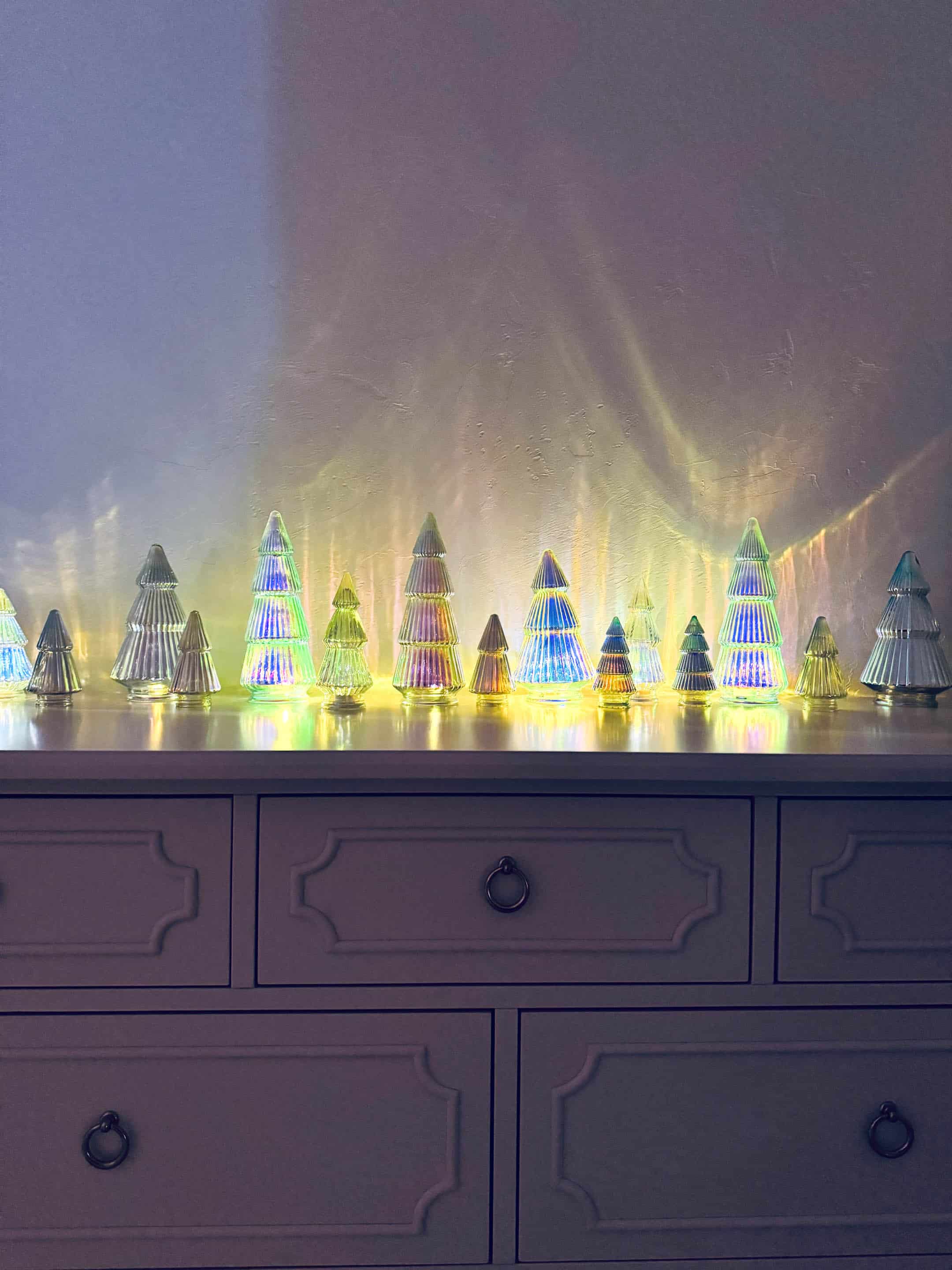 I put these little holographic trees in Emilia’s room. Found them at the dollar spot in Target a few weeks ago!