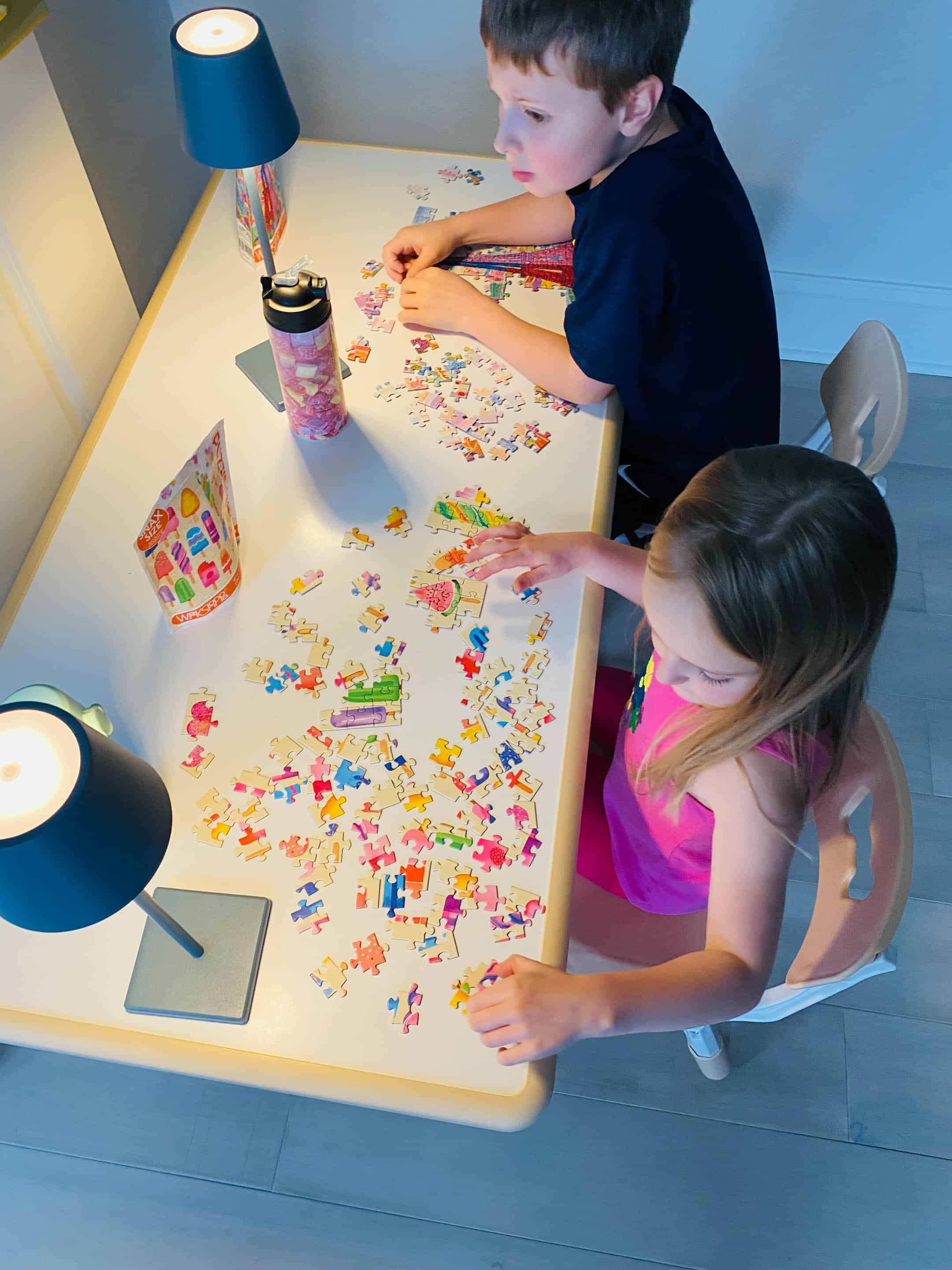 Puzzle time. These little snax size puzzles are amazing! The kids love them.