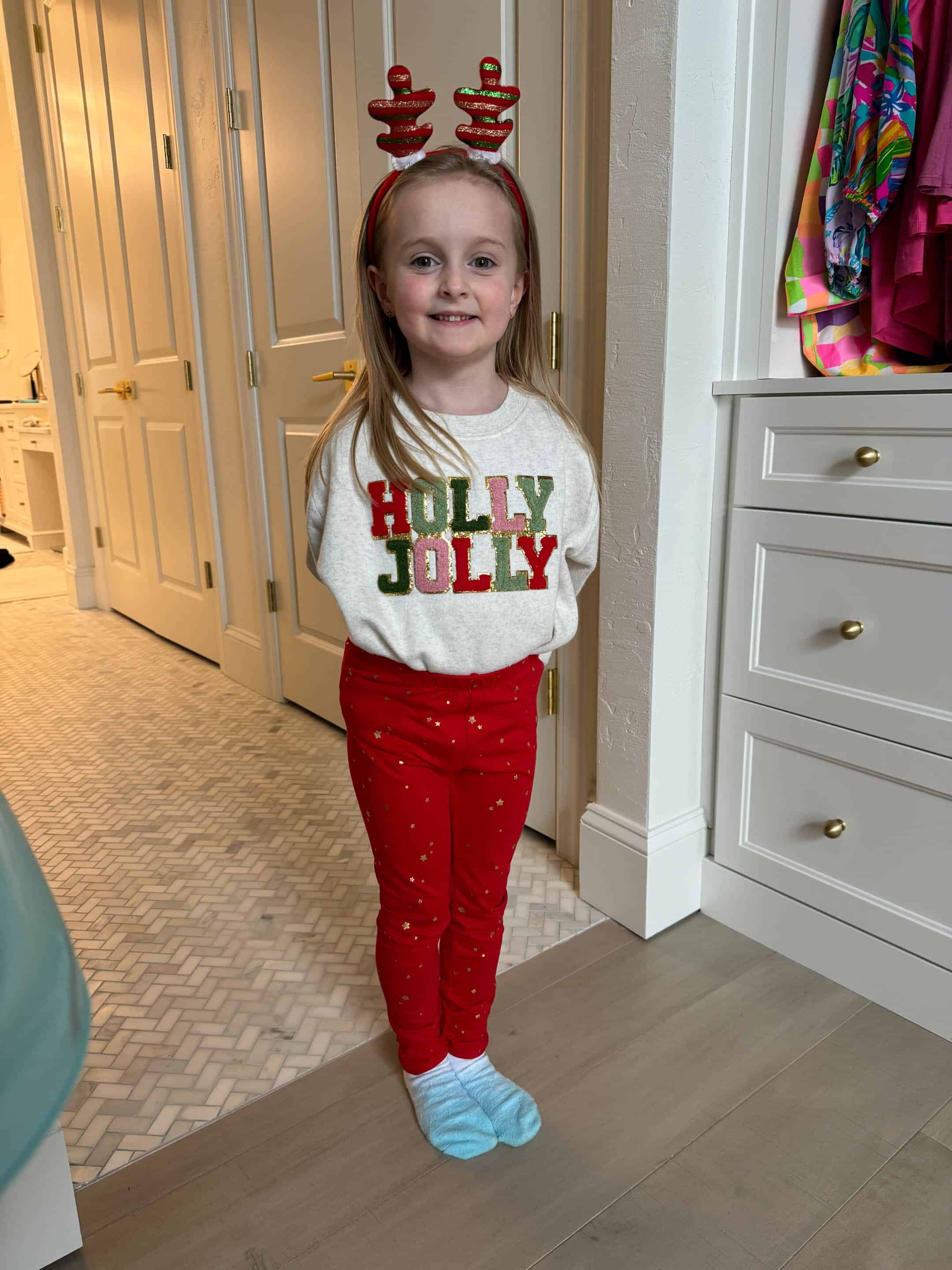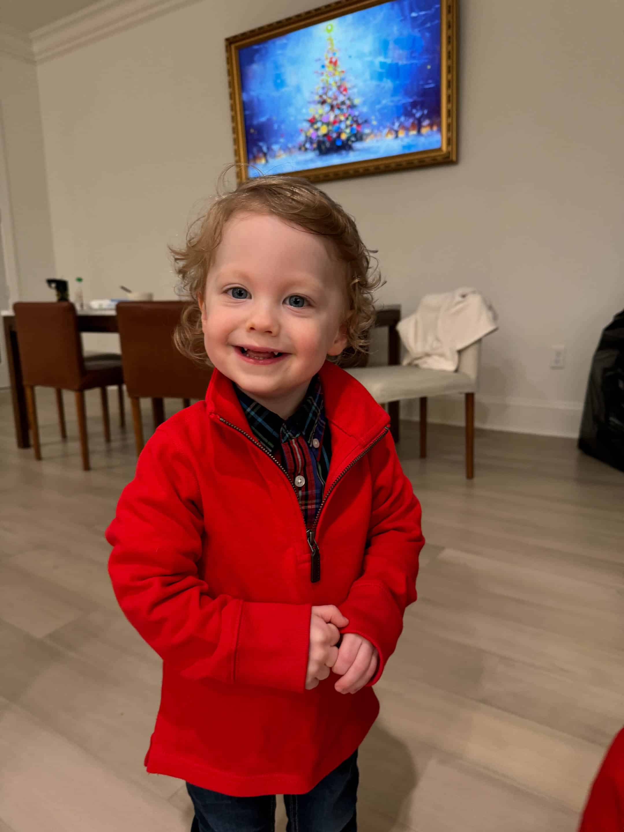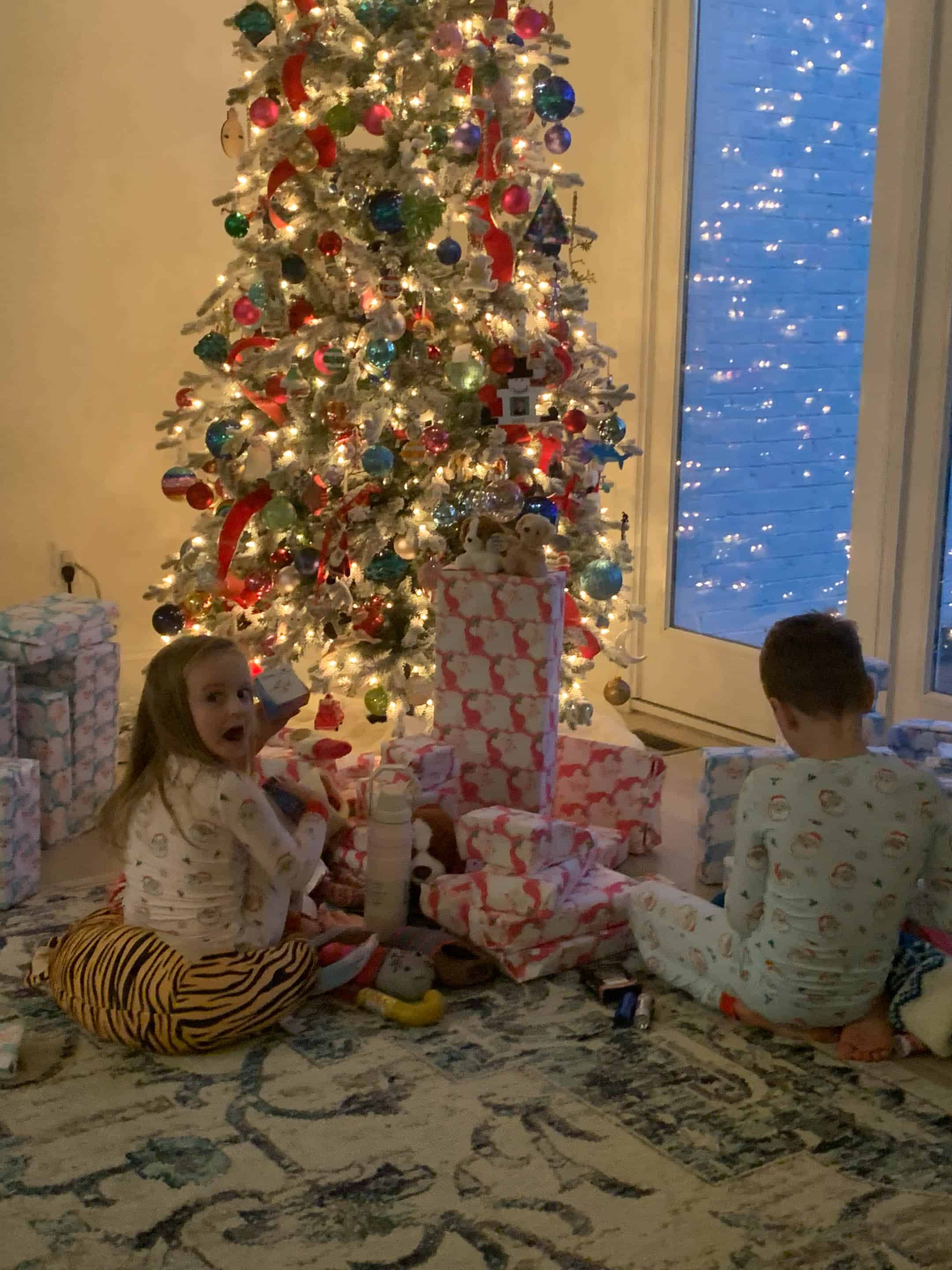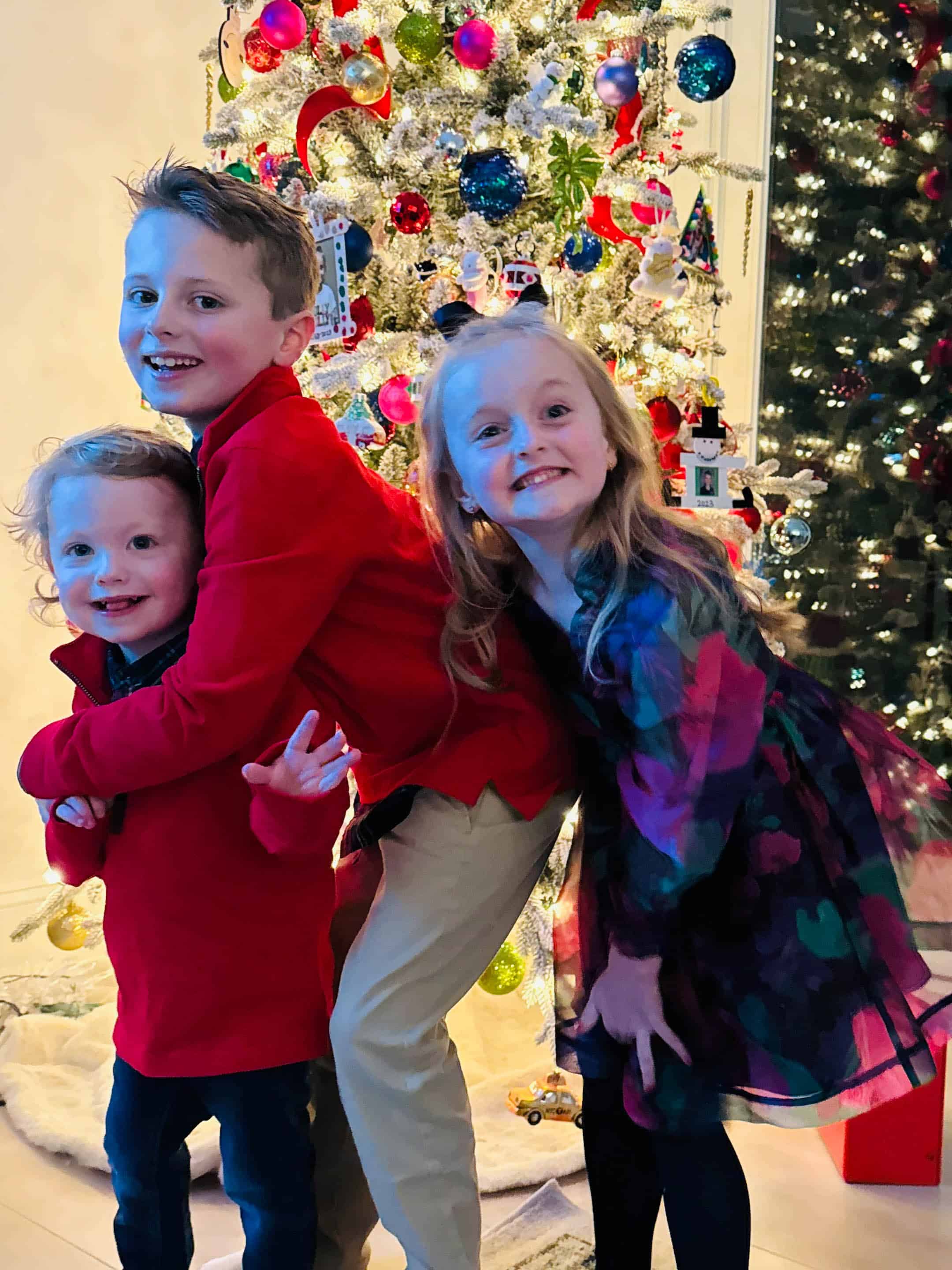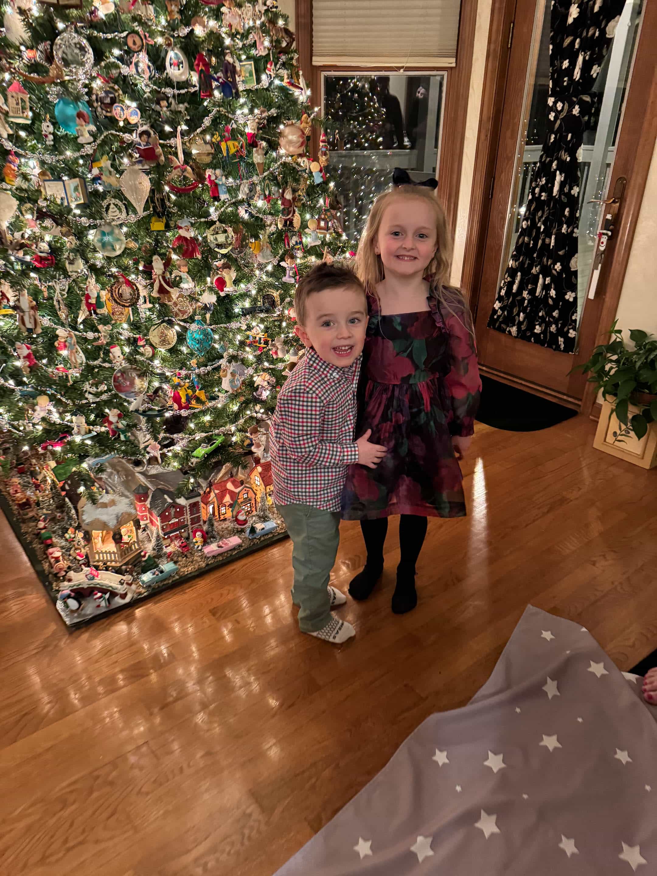 As always Emilia has the best outfits. Can’t get over how much Jordan is growing, and Max looked so adorable in his Christmas outfit. Glad he was feeling better by Christmas. Love your moms tree. It could be in hallmark movie for sure.