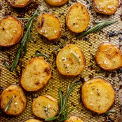 These rosemary melting potatoes are roasted until crispy on the outside and creamy on the inside, drizzled with rosemary garlic butter and served with just about anything. They are versatile, delicious and easy to make.