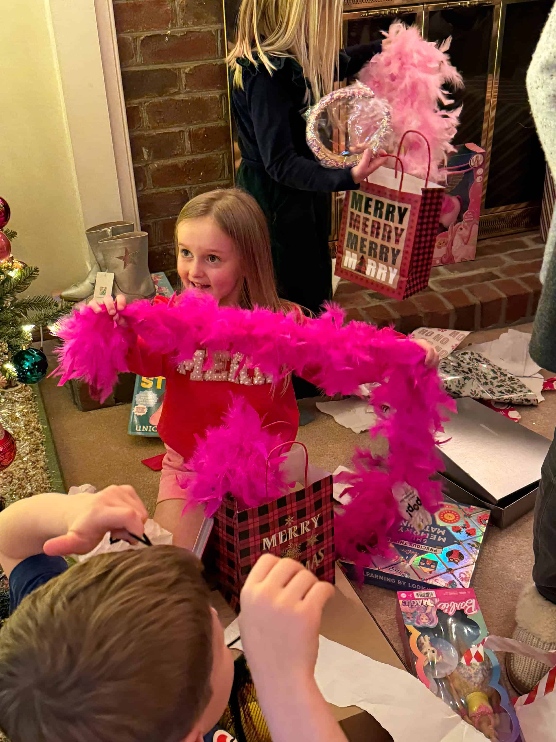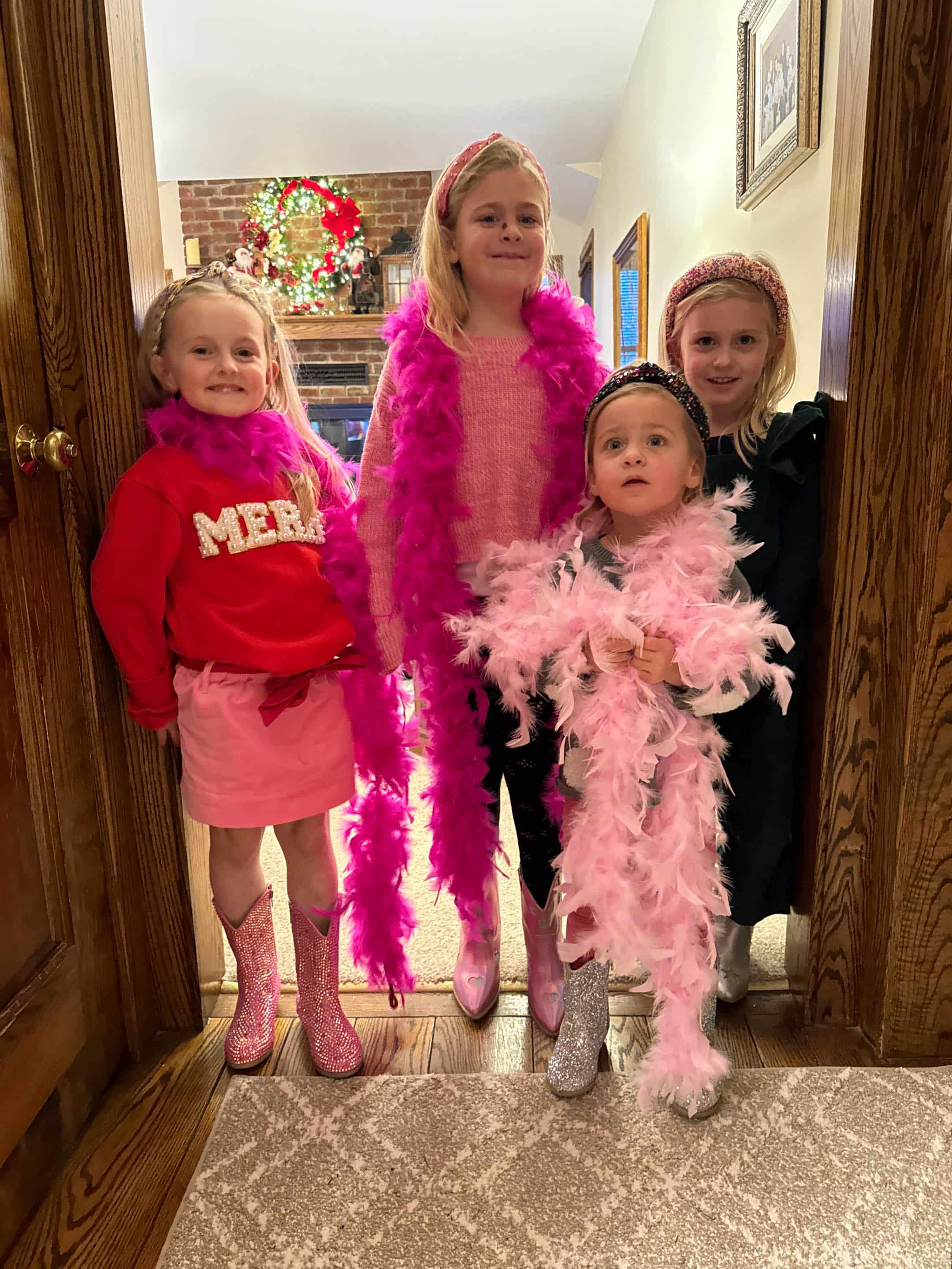 My mom got all the girls boots, boas and headbands!