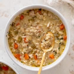 This creamy chicken couscous soup is a delicious and cozy comfort food, perfect for chilly winter days. Creamy and light, but satisfying at the same time, this is a soup that is in rotation all year long.