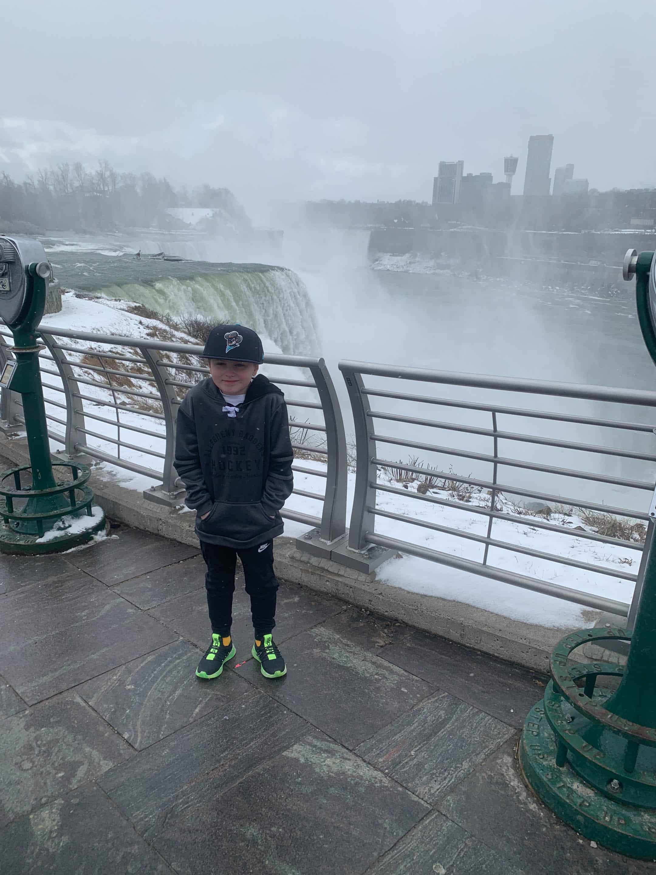 The boys took a freezing hiatus to niagara falls during game breaks.