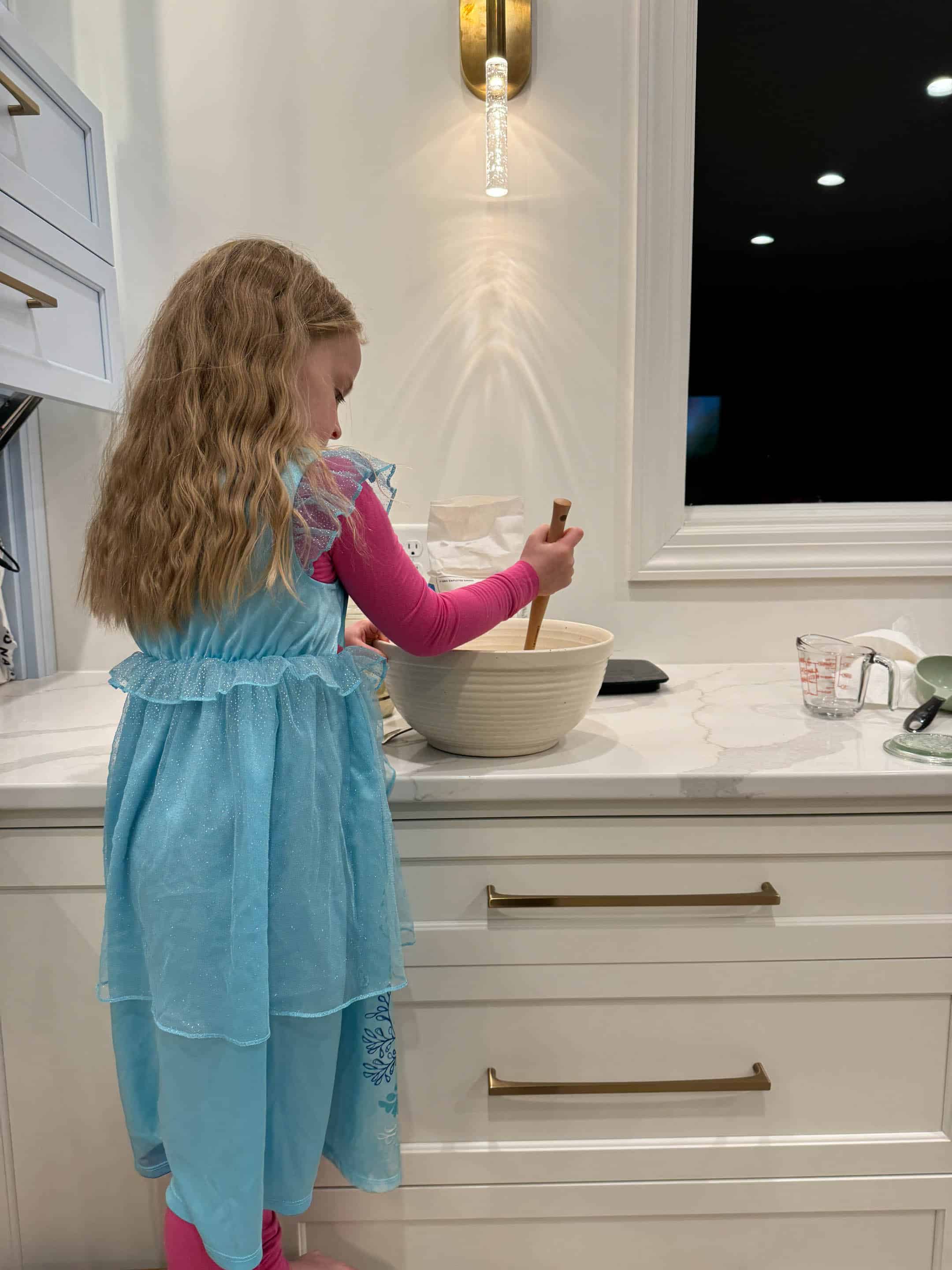 Emilia just helped me stir some dough for sourdough focaccia!