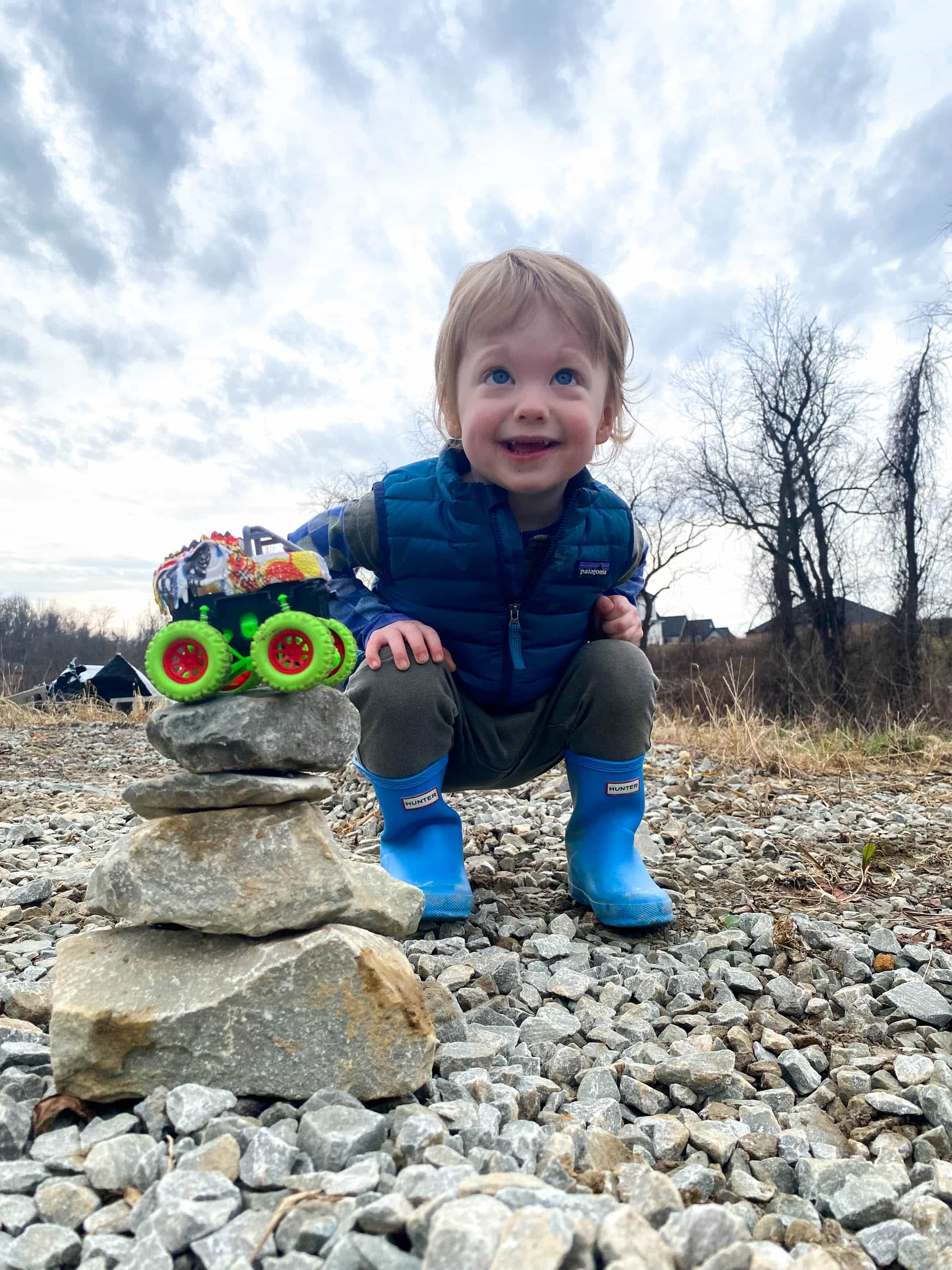 All Jordy needs is a truck and some rocks.