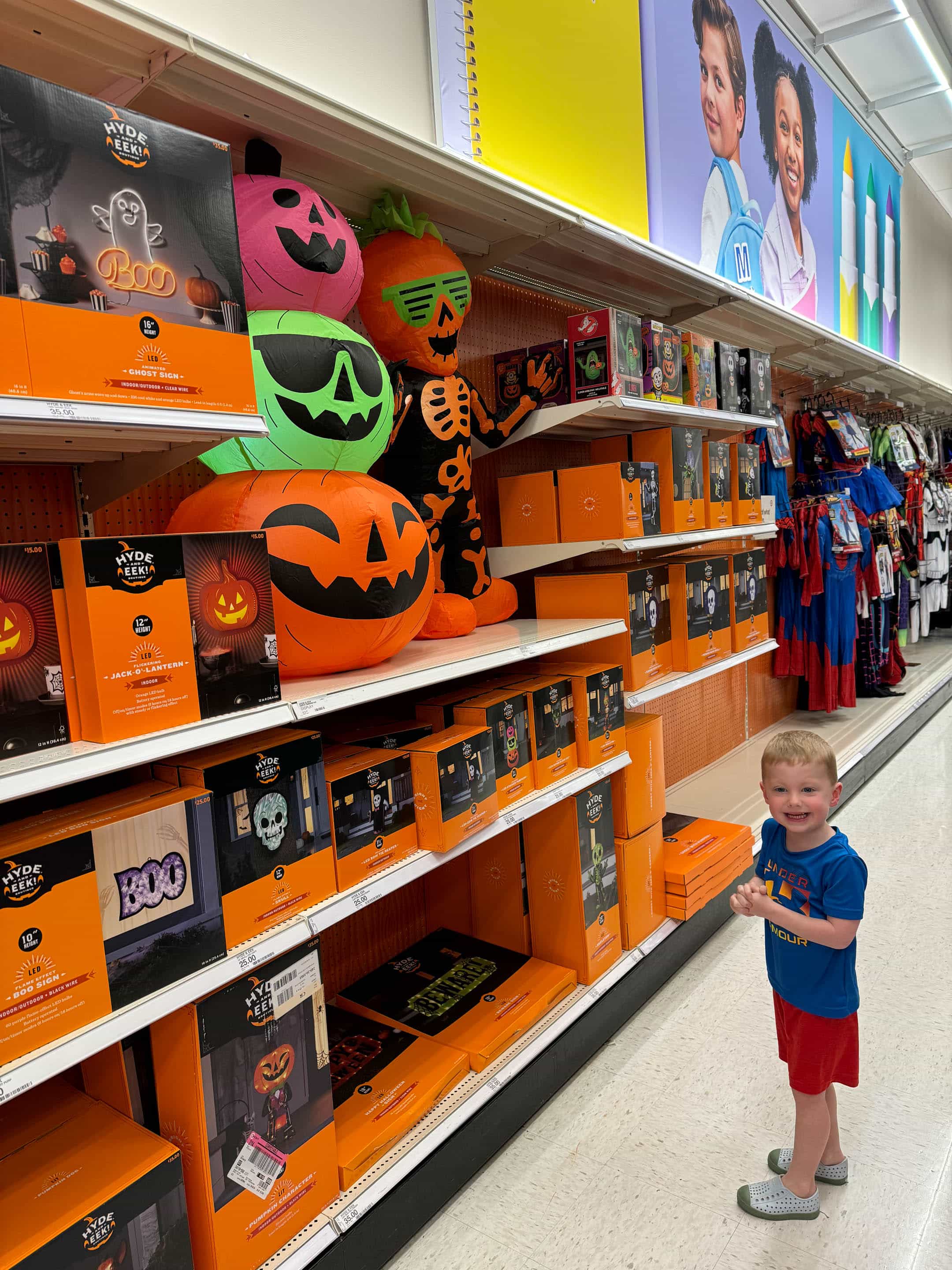 When mine was little (he’s now 12 and 5’8″ !!!) We would take trips to Target during Halloween time specifically to push all the buttons on the stuff that made noise. And pick up a few things, but the buttons were the draw. LOL