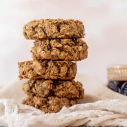 I love making these apple oatmeal breakfast cookies for meal prep each week! Made with apple butter, maple syrup, almond butter, grated apple and spices, they are hearty, crunchy, nourishing and satisfying. The best breakfast or snack!