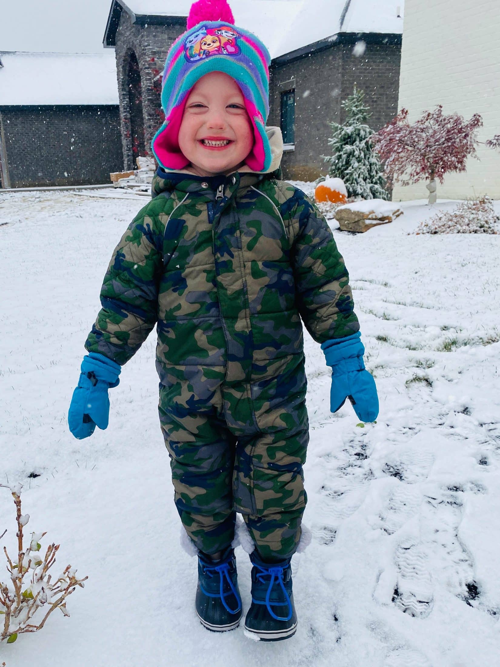 Took many walks in the snow! In Max’s old snowsuit, Max’s old boots, Emilia’s old hat… I love it!