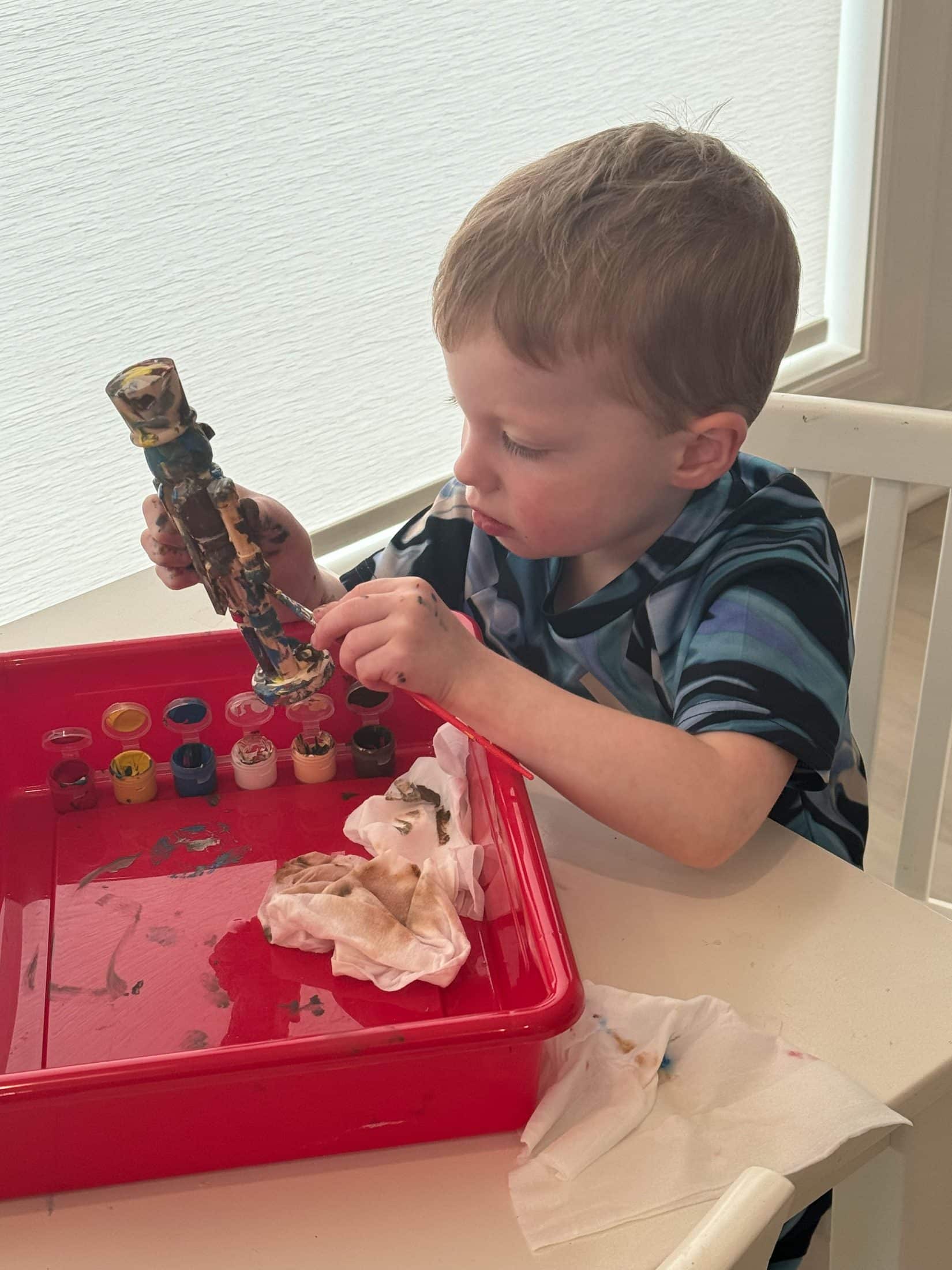 Locked in to painting his nutcracker. He loves painting these and displaying them in his room!