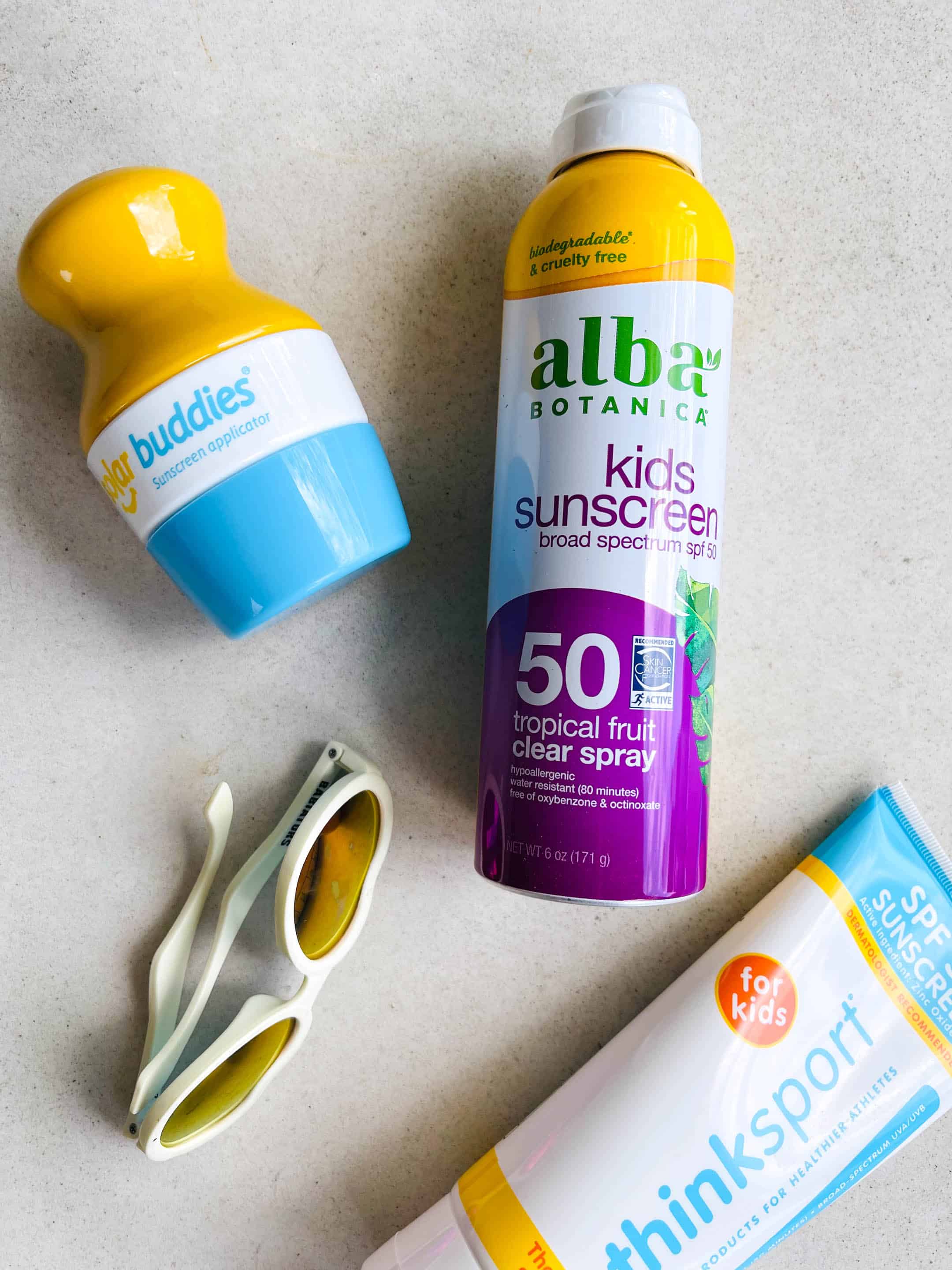 When it comes for sunscreen for the kids, we’ve used think baby since Max was born. It is super thick and you have to scrub to get it off, but it doesn’t burn the eyes at ALL and my kids are totally fine with it. I love the think kids, think sport and laroche posay anthelios. And the banana boat light as air. I also love the vacation sunscreen and the whipped sunscreen! I use the coola scalp sunscreen on the kids.