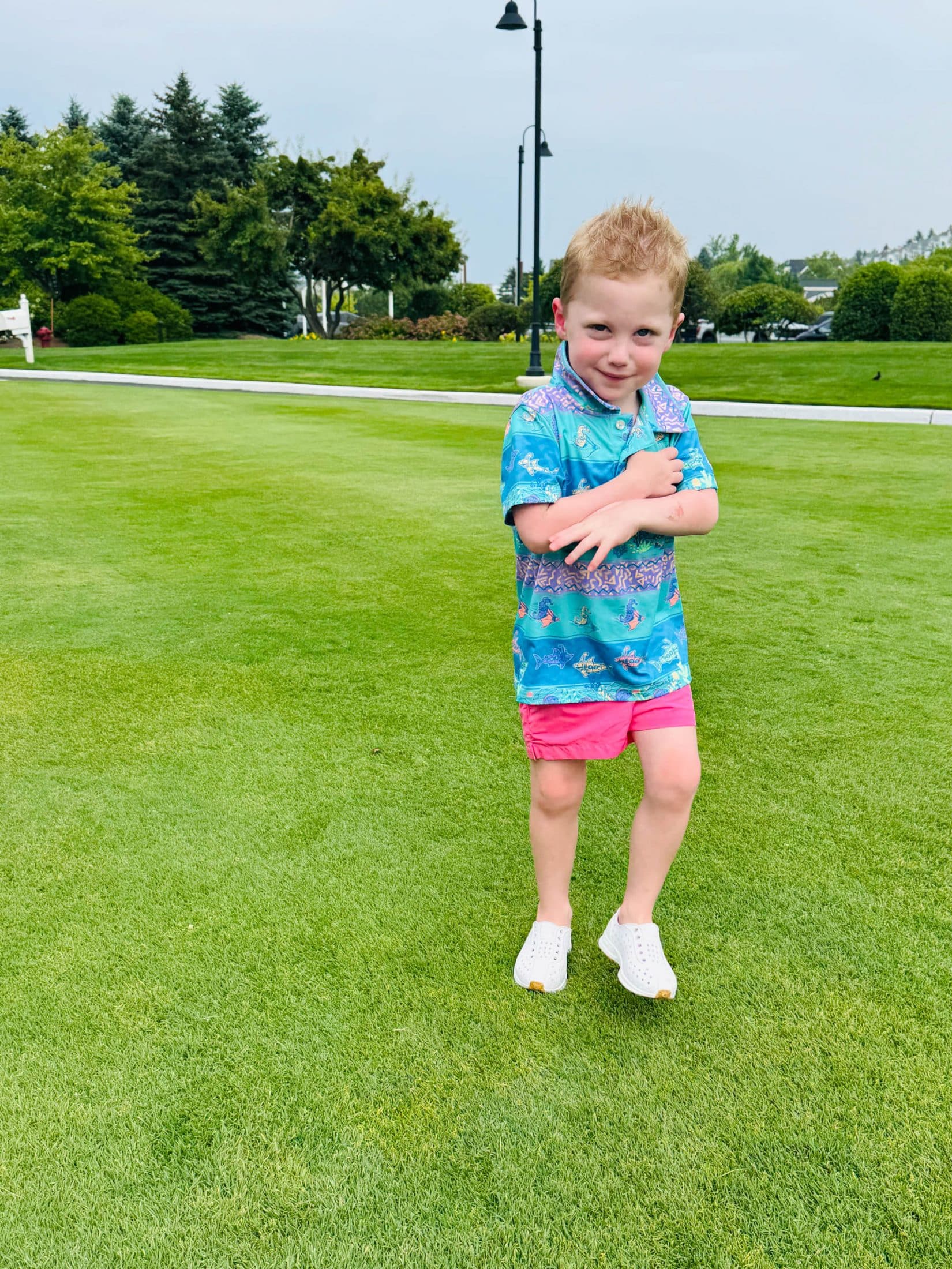 Neon pink is his favorite color right now!!! YES.