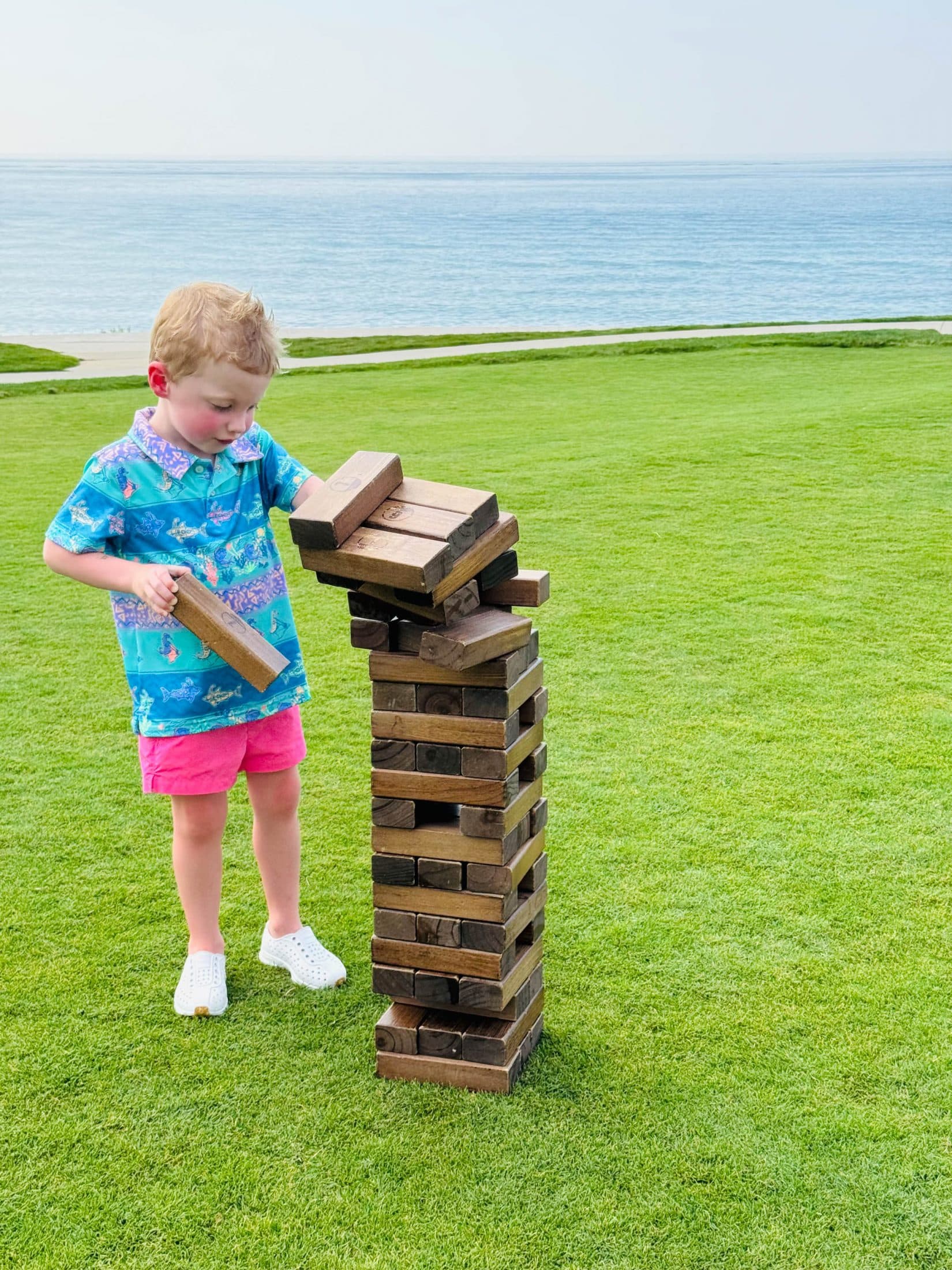 Jenga bigger than him.