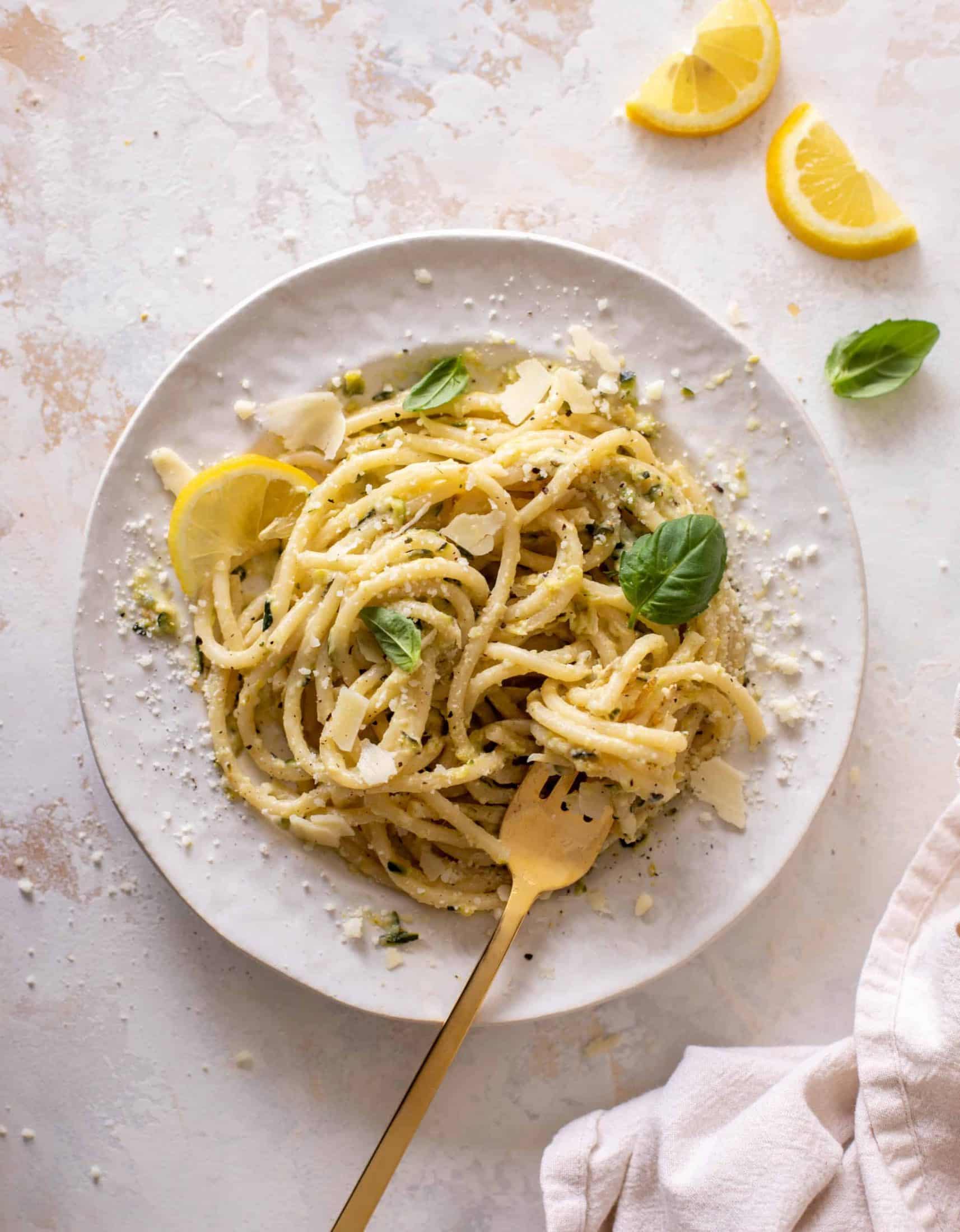 Creamy lemon zucchini bucatini