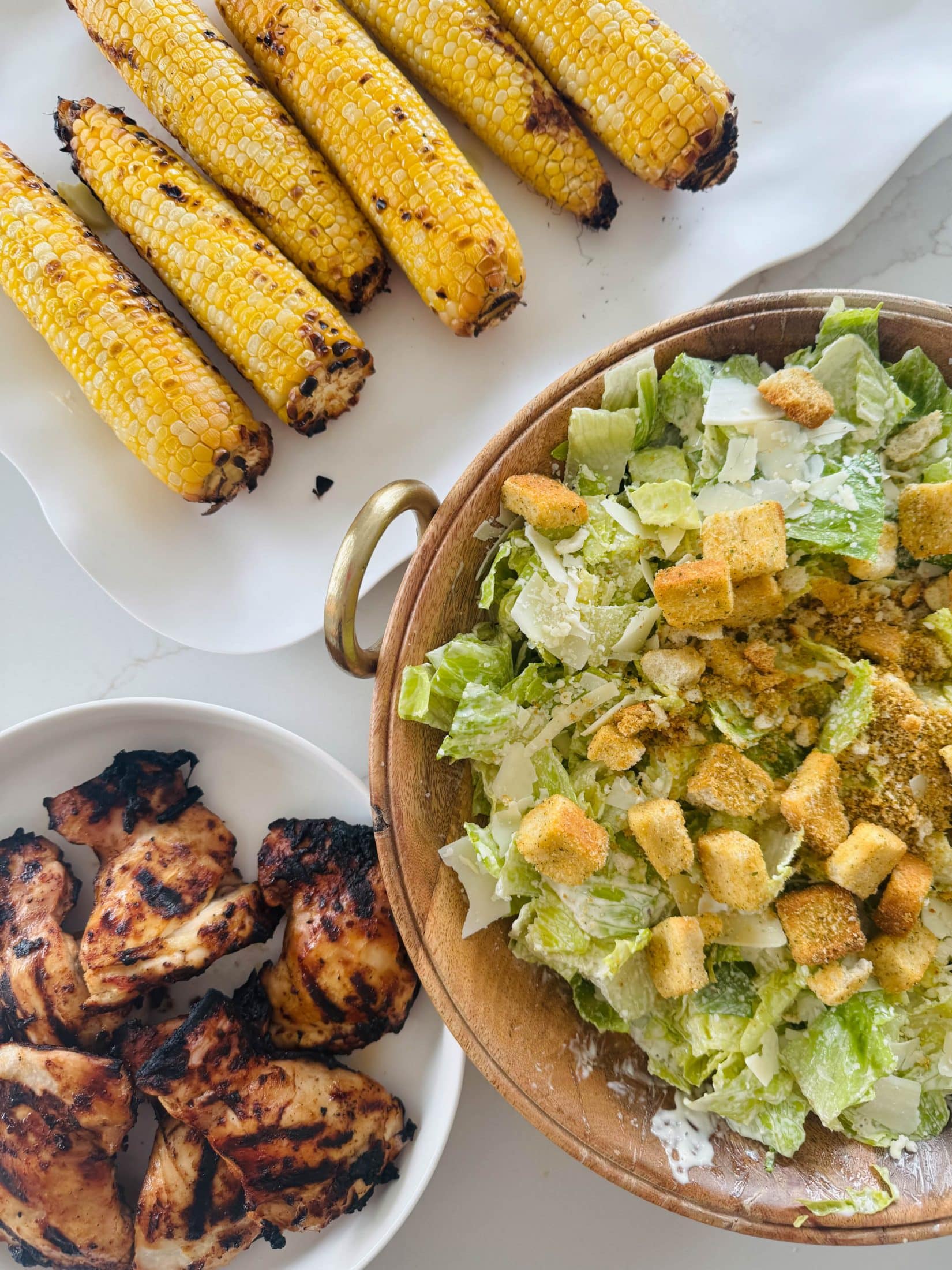 20 minute dinner I threw together tonight! Corn, grilled chicken, caesar. The best.