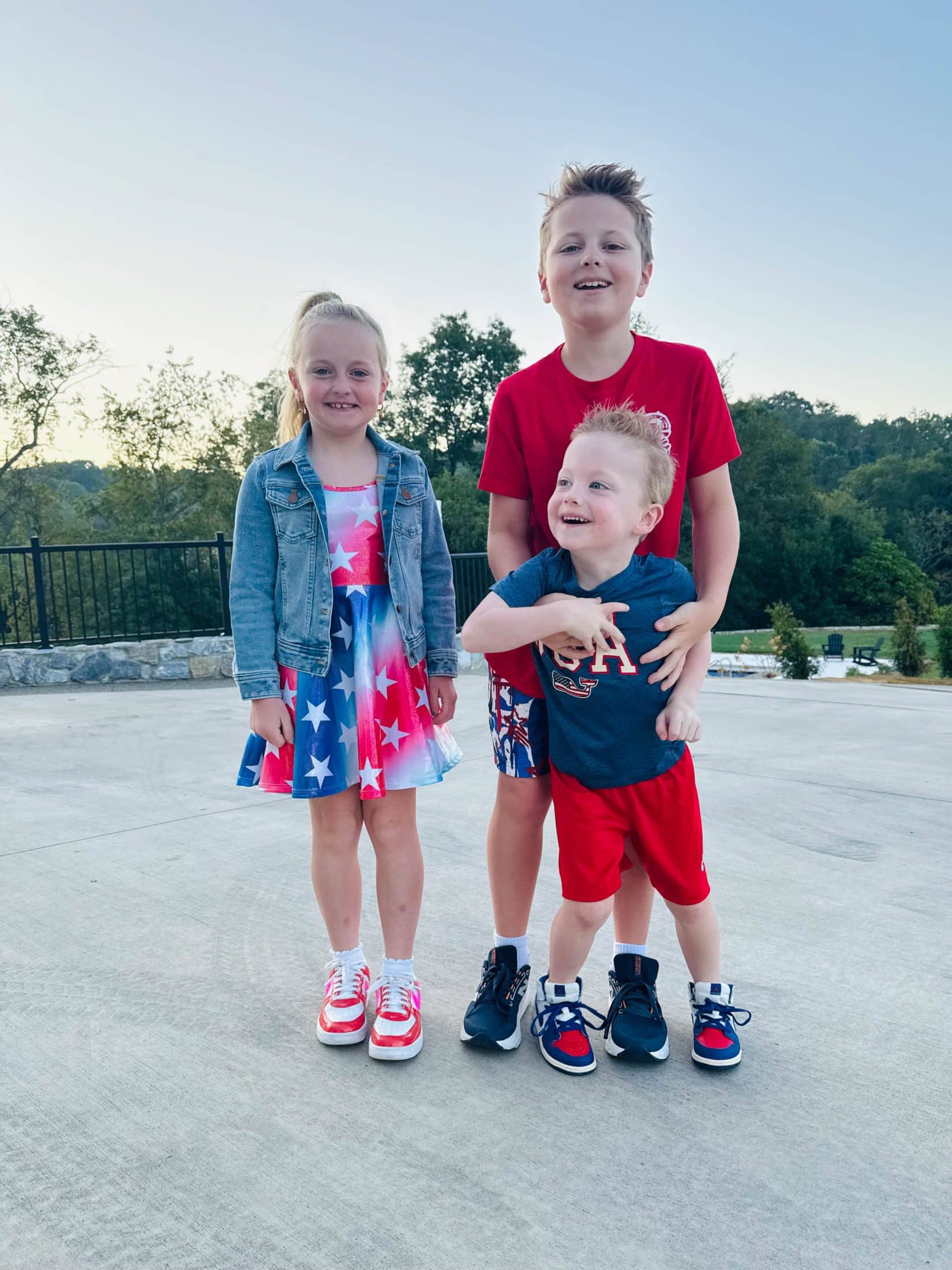 The kids could wear red/white/blue to school on Thursday in honor of 9/11. Jordan wanted them to all get a pic together.
