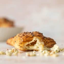 These are fun to add to a brunch spread, to make for a snack or happy hour or even game day. Like most puff pastry recipes, they really taste best when eaten the day of baking. That being said, they don’t HAVE to be warm. The cheese gets all melty inside and the pastry is puffed, so it meshes perfectly and tastes good even once it’s cooled down.