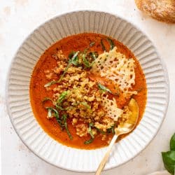 The whole dish together tastes fabulous. It also makes regular tomato soup so much more interesting. If you’re someone who feels like you’re eating tomato sauce when you eat tomato soup… this will change your mind.