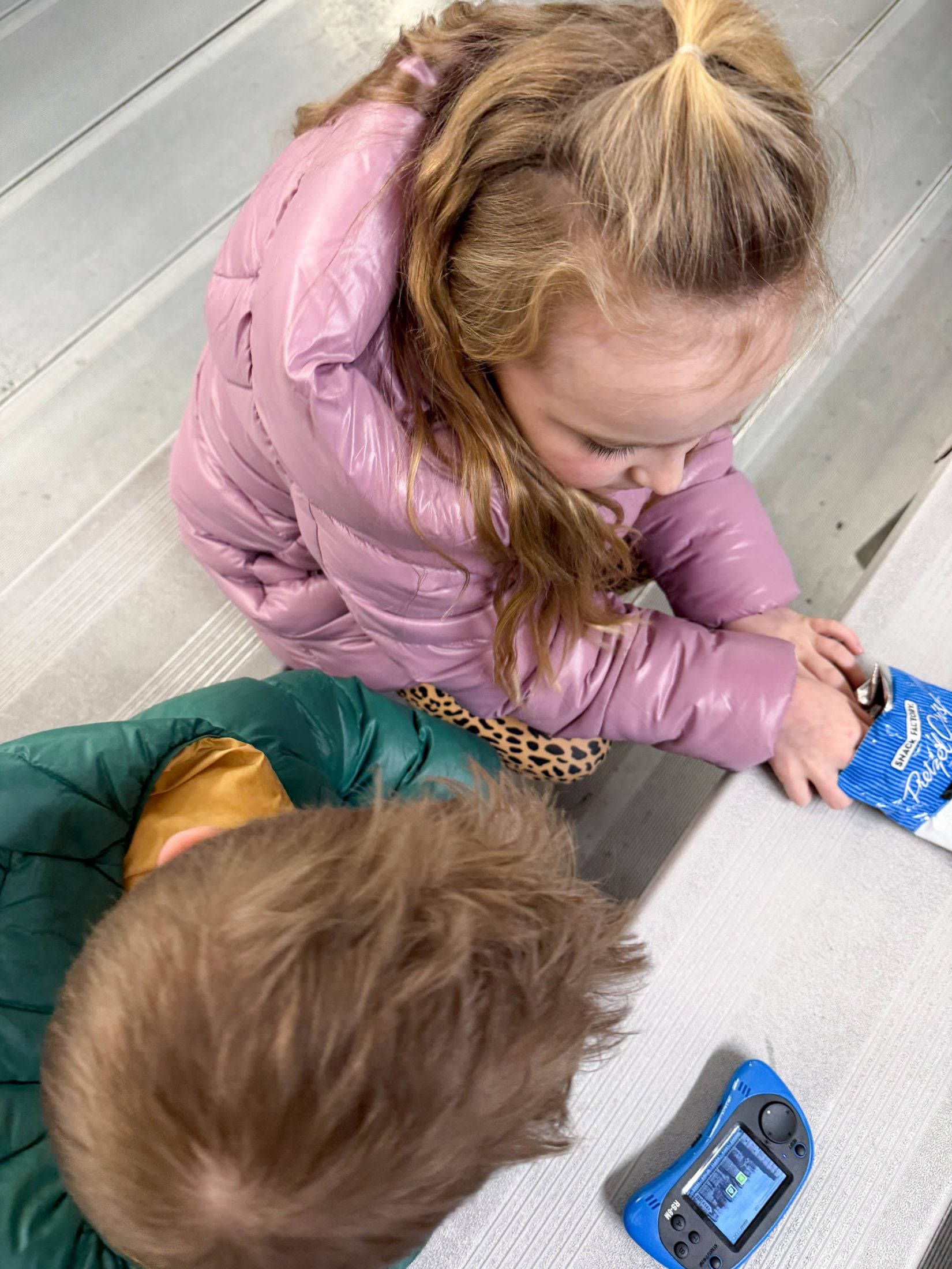 Playing these little handheld games at hockey.