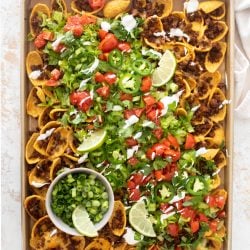 This is such a fun change of pace from regular sheet pan nachos. And the best part is that the kids adore it!