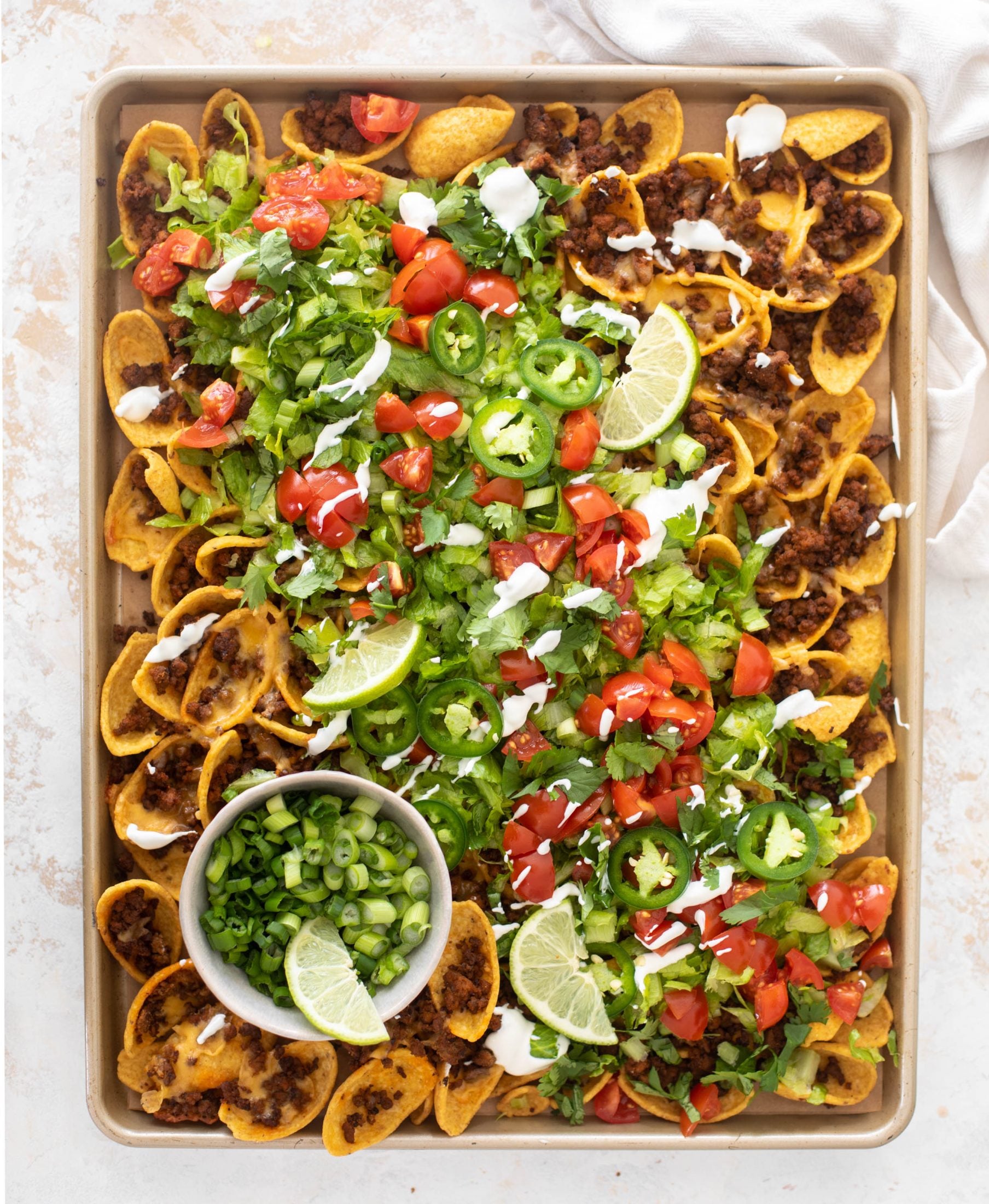 For this sheet pan version, I personally think that Fritos work best. And not just any fritos, but fritos SCOOPS! They have to be the scoops.