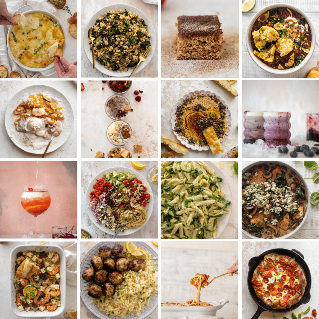 It is packed with over 100 fantastic recipes, from breakfast to dinner to snacks to treats to mocktails and more. We have simple and flavorful dishes for every time time of day, some entertaining snacks, another one (!) of my signature sauces & dressings chapters (the fridge essentials that elevate everything!), so many tips for how I get meals prepped and ready for the week along with a lot of our family favorites. Along with so much more.